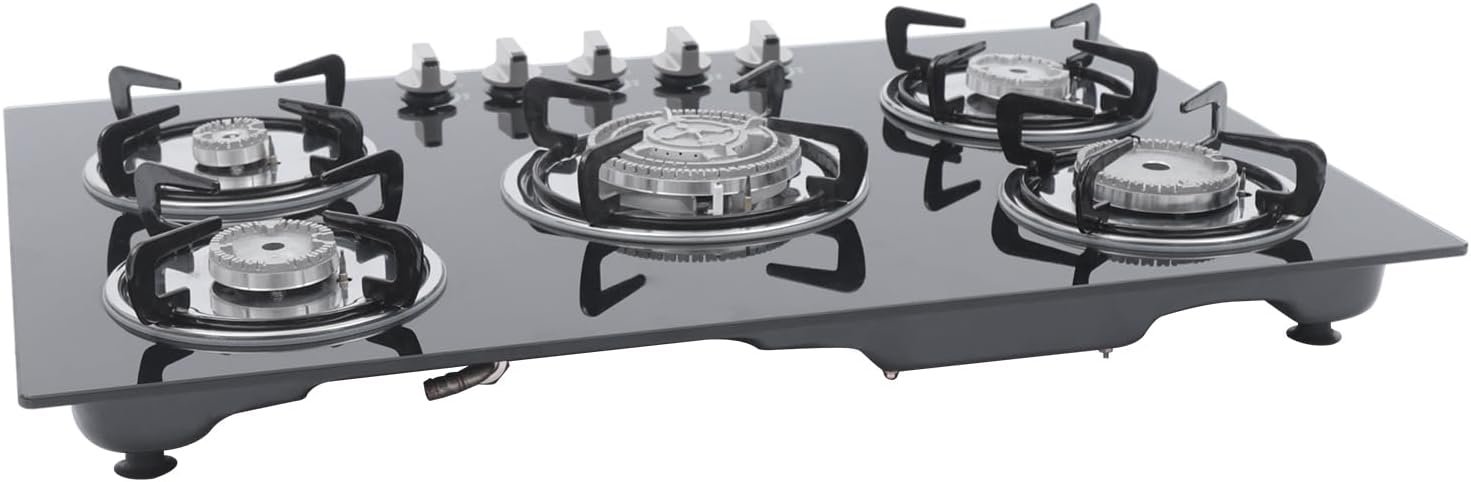 🔥【DURABLE】:The 5 burner natural gas stove is made of tempered glass surface and enameled grill for more durability and long life.
