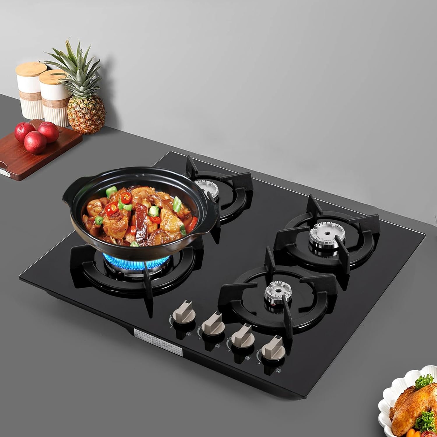 Excellent Load-Bearing Capacity: The thickened tempered glass (8mm) and cast iron pot brackets give this gas stove top a maximum load-bearing capacity of 44.09 pounds, ensuring stability even under high-intensity cooking.