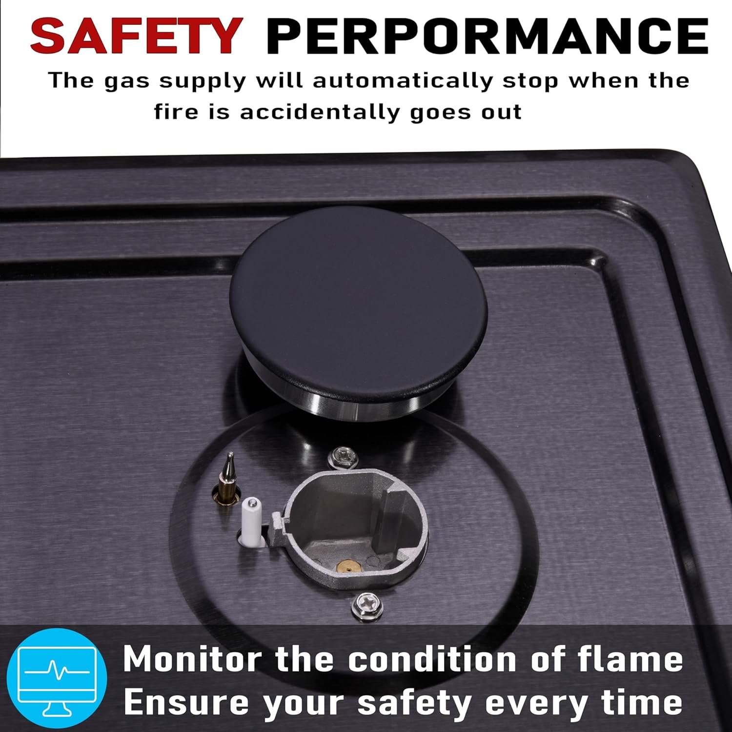 Stability & Safety: Our robust, seamless cast-iron grates enable effortless sliding of various heavy cookware across the gas stovetop. Equipped with thermocouple protection to prevent any accidental flameout.