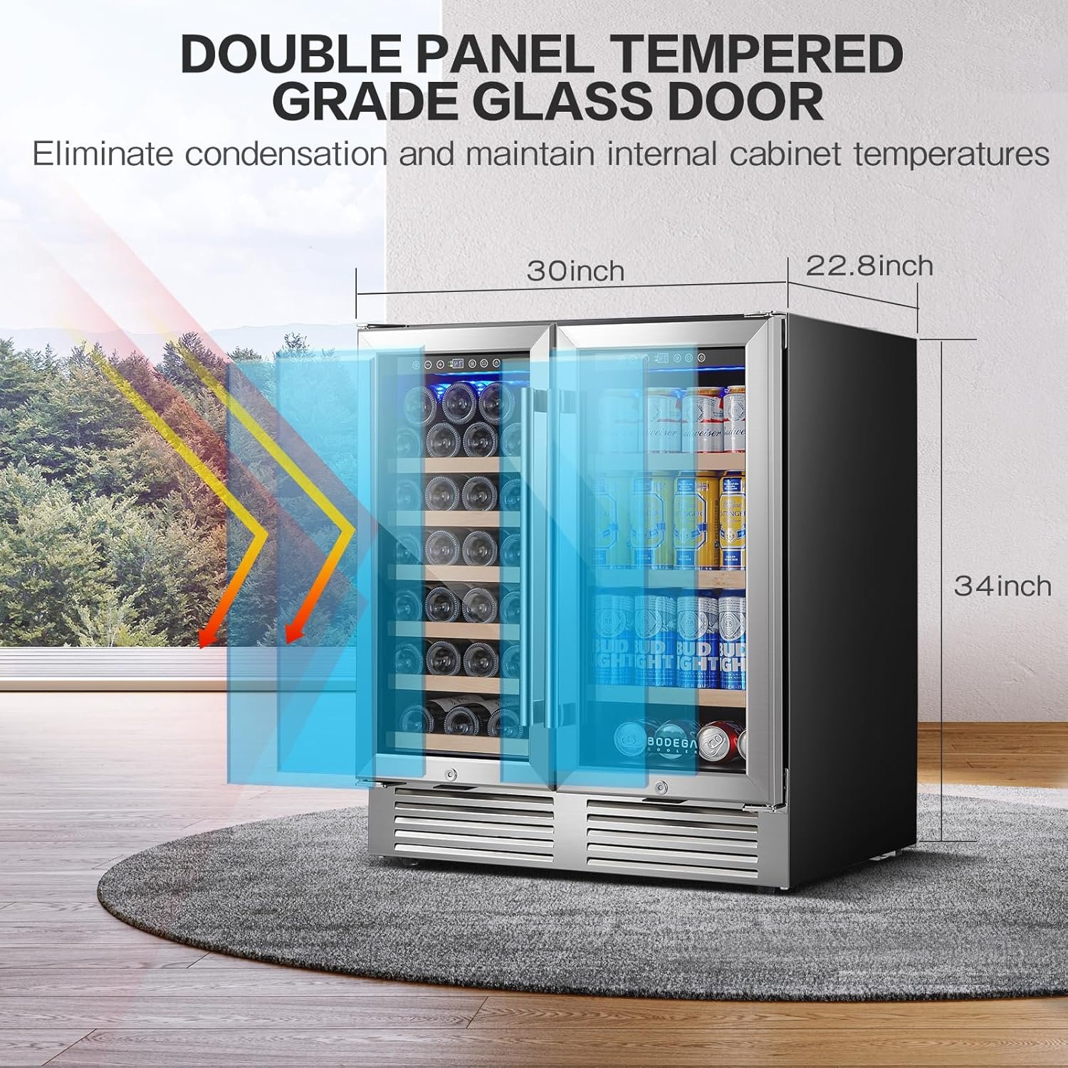 BODEGACOOLER 30 inch wine and beverage fridge under counter measures:22.8″(D) x 29.7″(W) x 34.2″(H) (inch).