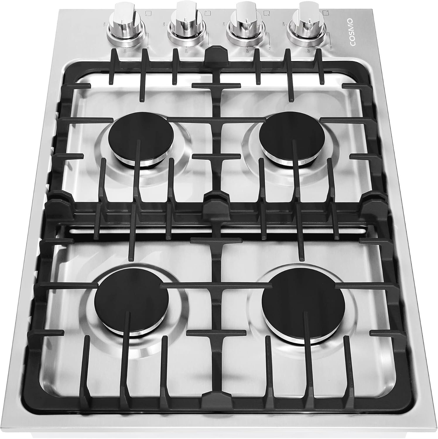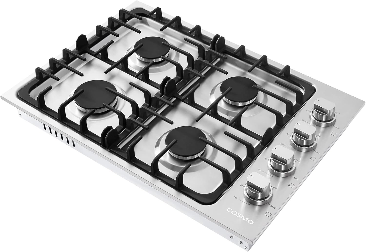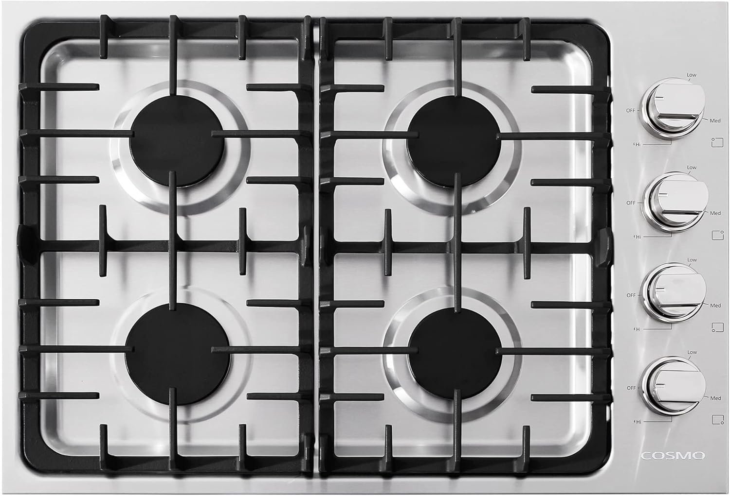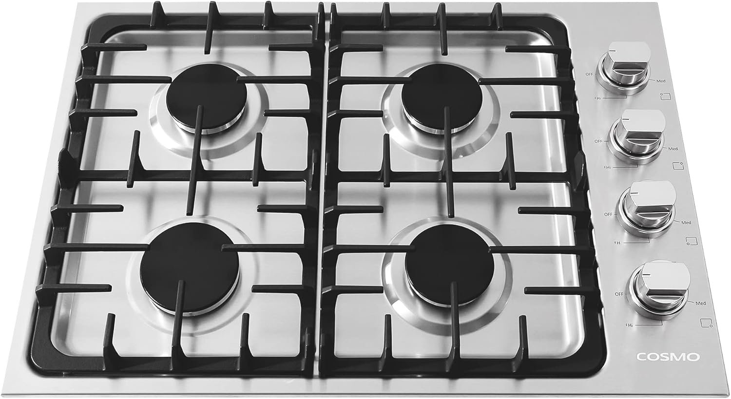 Super happy with this. Excellent product for the price. Although the middle surface flexes a little with some weight, It doesnât really affect the amazing performance. The 2 bigger burners are super hot and boil water super fast. They also work great for browning and searing meat. It actually outperformed the Viking we replaced it with. Our old 30â Viking only had 4-burners with the knobs on the right side. The two hottest burners were placed side by side so we couldnât really cook well with 2 burners at a time because itâs too crowded. This Cosmo stovetop has the knobs on the bottom which allows for more space for extra pots or pans.