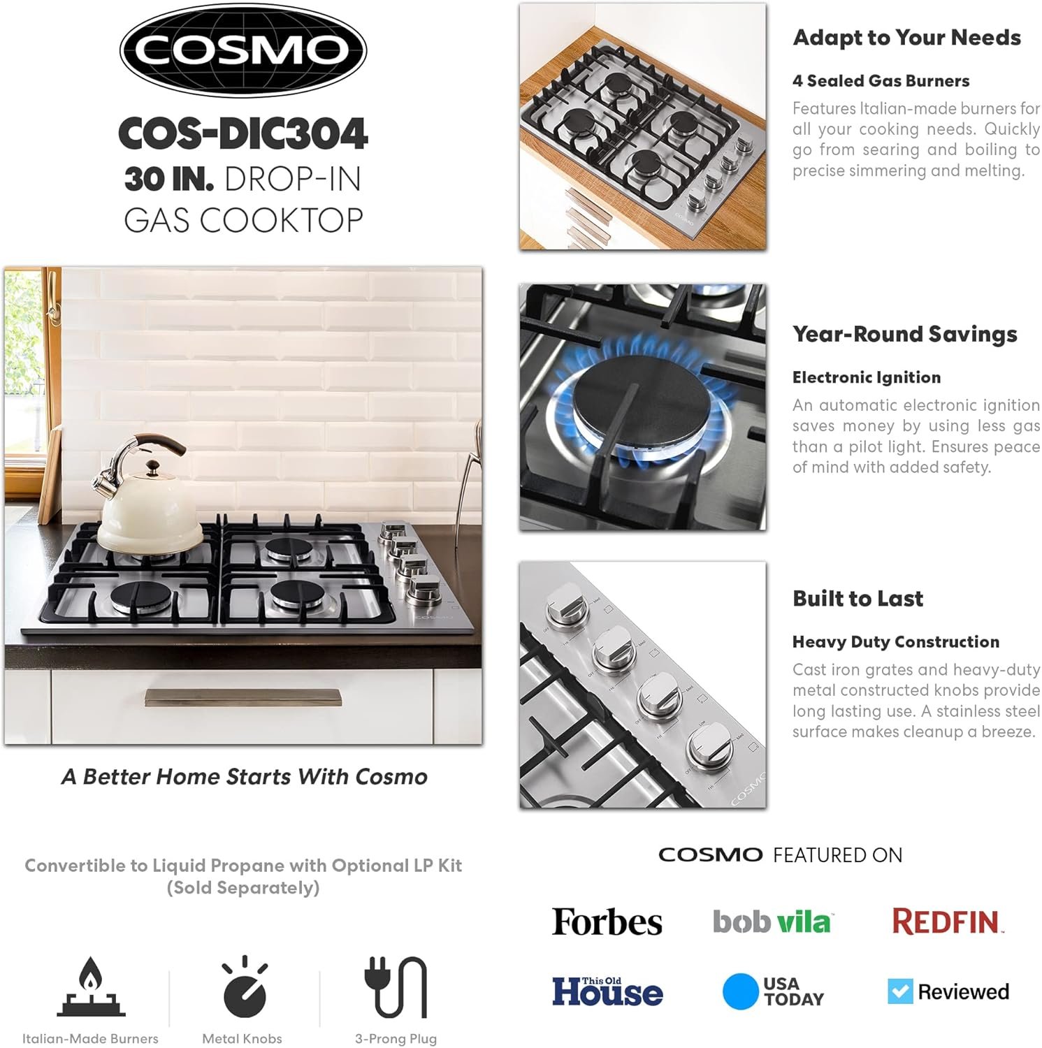 I did a lot of researches, read a lot of other product reviews and end up purchasing this Cosmo Cooktop model COS-DIC304 to replace my old unit. So glad I did! The installation was super easy. You can see the quality of the product as soon as the box is opened. Great price, looks nice, works great, and easy to clean. Most importantly, my wife loved it and kept thanking me. Need I say more!