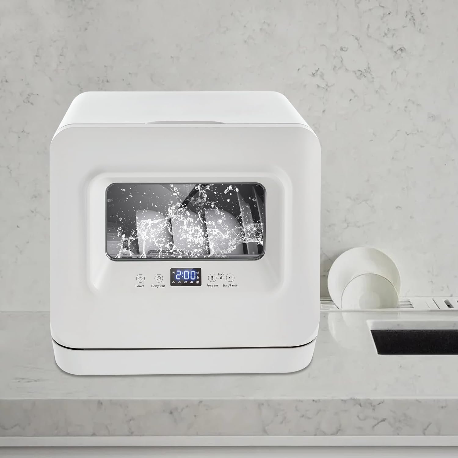 Be the first to review “Countertop Dishwasher Compact Dishwasher, Mini Dishwasher 5 Programs with 5.5L Built-in Water Tank 120V Portable Dishwasher 360° Dual Spray Mini White Dishwasher 785W”
