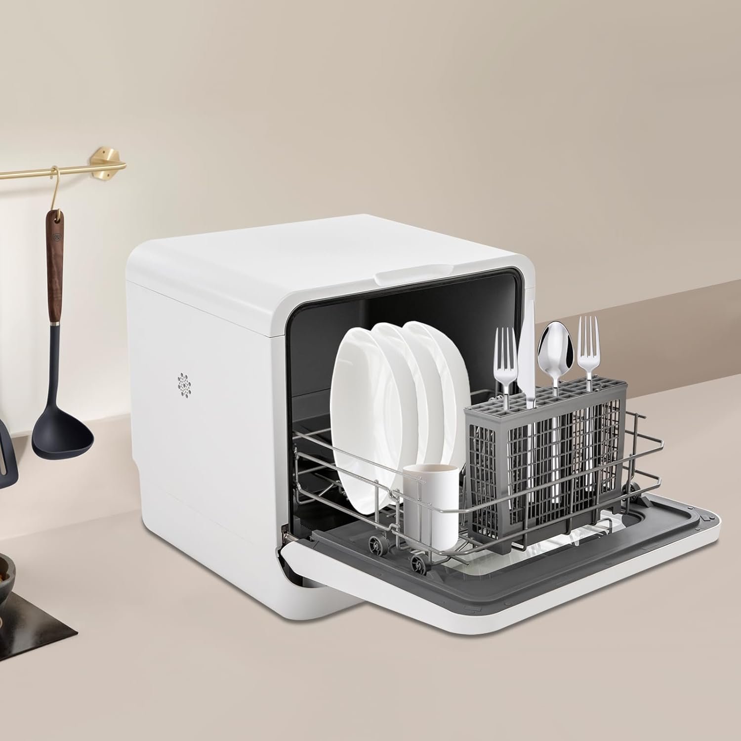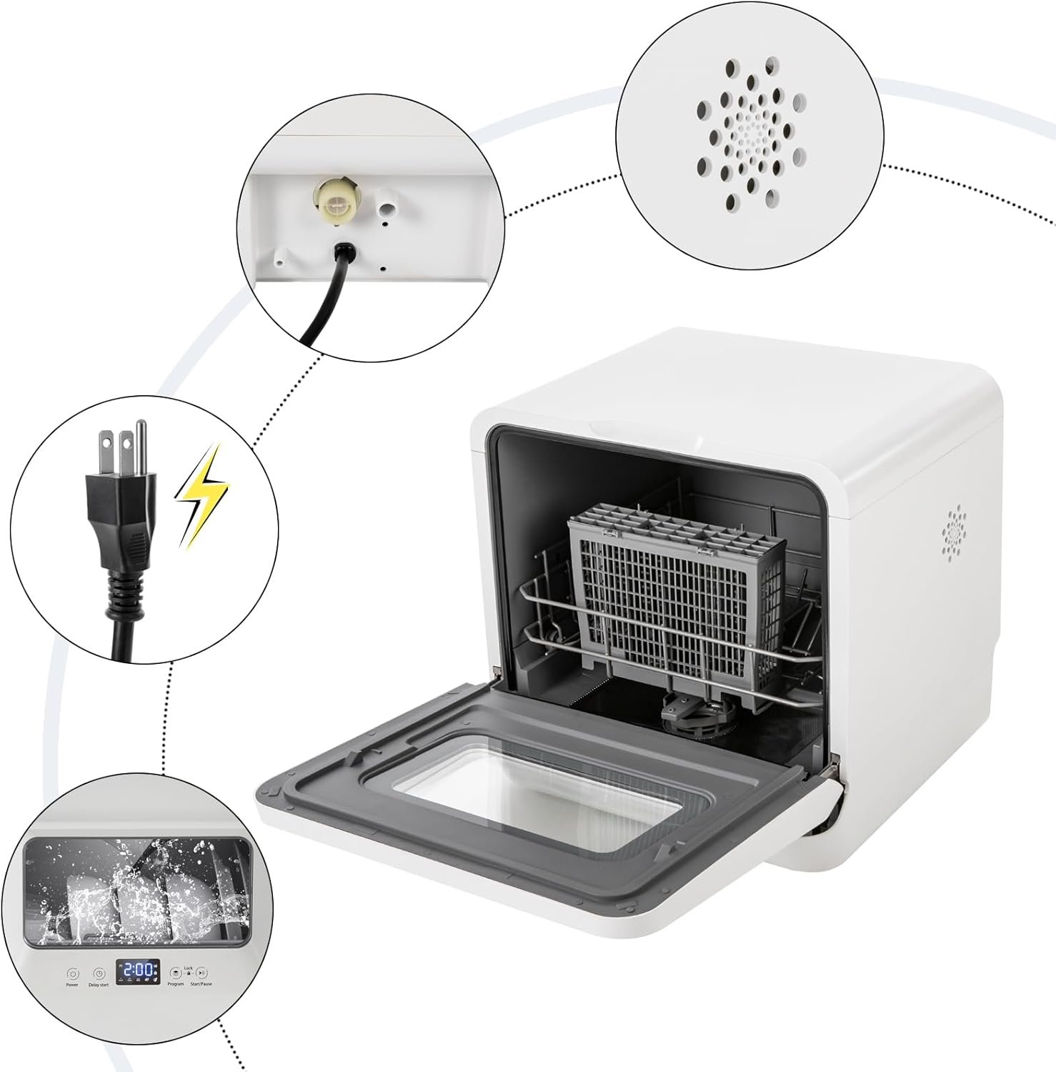 Countertop Dishwasher Compact Dishwasher Safety Guard: Multiple heat dissipation holes on the side, IPX1 waterproof grade, and thickened doors can effectively ensure safety during use, so you can use it with confidence