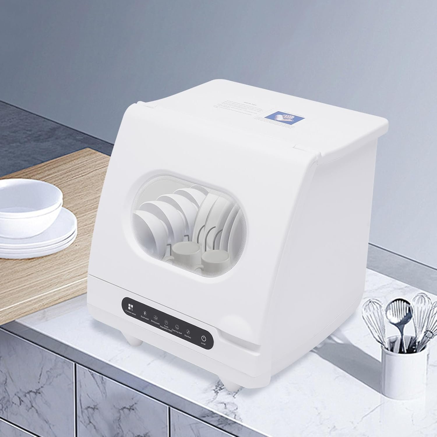 [Compact Design]: This tabletop dishwasher machine can fit a variety of dishes. it can hold 2‑6 sets of dishes at most, and the water consumption for each dish washing is 4-5l. it is ideal for small-sized houses, apartments, dorms, boats and campers/rvs.