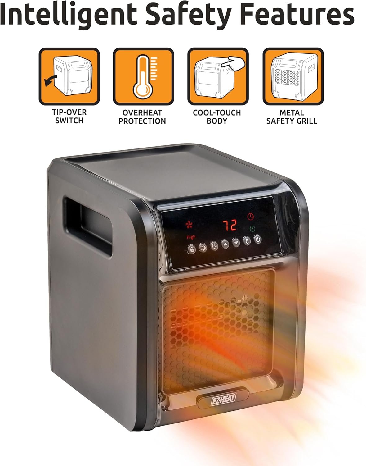 ENHANCED SAFETY MEASURES: Your safety is our top priority. This heater is equipped with a durable metal safety grill that prevents direct contact with the quartz bulbs, ensuring protection for you and your home. Additionally, it features a built-in sensor that monitors the temperature of the heater. If the unit reaches unsafe temperatures, the sensor automatically deactivates the heater, providing you with added peace of mind. With these protective features in place, you can enjoy the warmth and comfort of the heater without any worries.