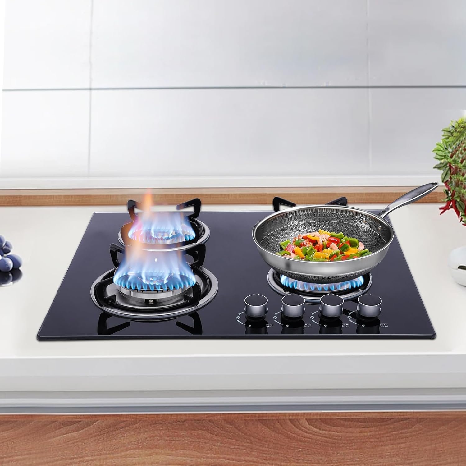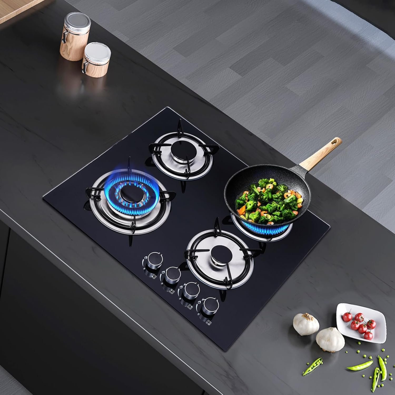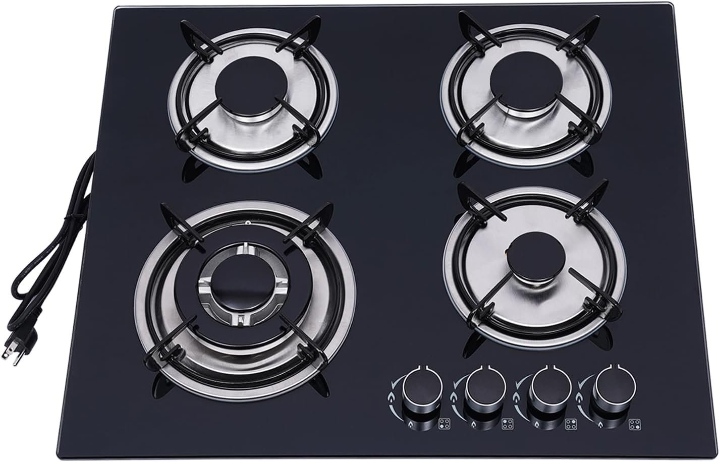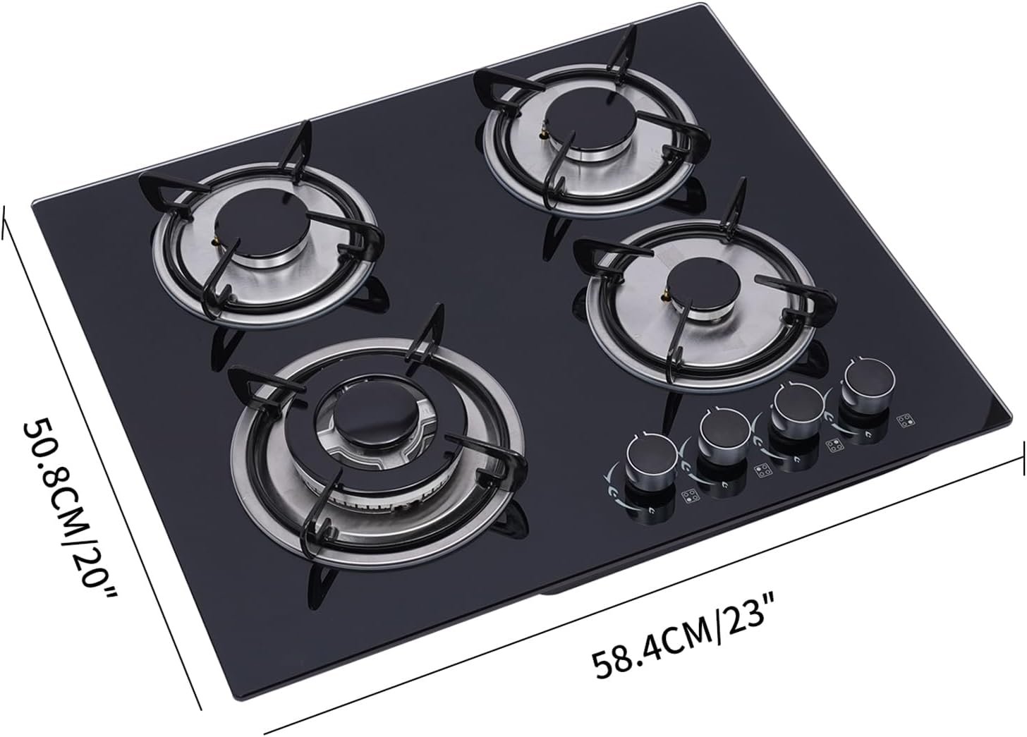 【4 Burners Cooktop】The 4 burners with 4 independent control knobs allow you to easily adjust fire power. You can cook different ingredients at the same time, saving cooking time and enjoying more delicious food
