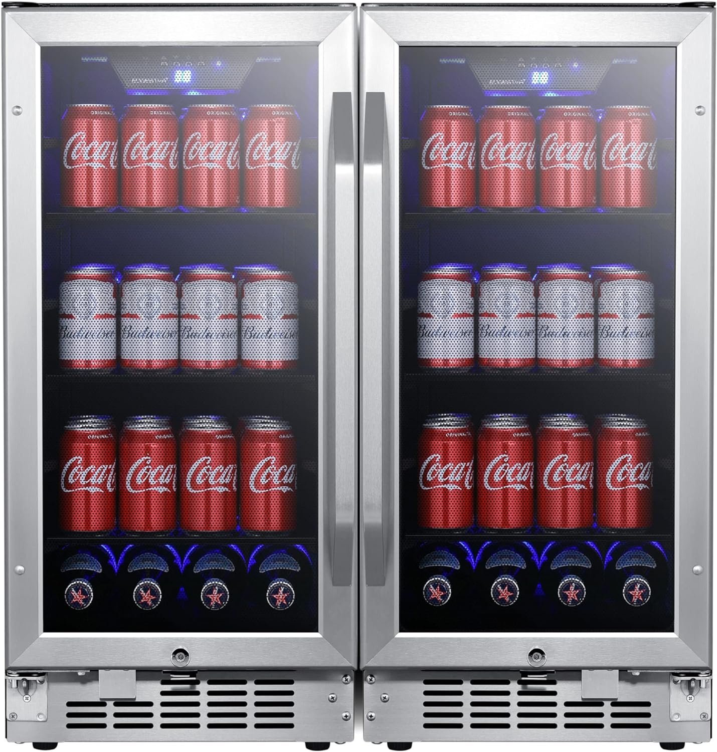 This is a set of two 15 inch wide coolers, both of which are shipped right-handed. To get the pictured French door configuration, you will need to reverse the door on one of the units using the included installation instructions.Fan Circulated Cooling: Less likely to produce cold spots than plate-cooled unitsBuilt In and Freestanding Capabilities: Fan-forced front ventilation allows this unit to be installed flush with surrounding cabinetry in an undercounter installation or optionally installed as free standingDigital Controls: Soft touch buttons and an digital display make choosing a temperature setting a breezeRubber Bushing Installed Compressor: Compressor-based cooling produces results that other units just can’t compete with, bring your beverages to the perfect temperature quickly — rubber bushings dampen the usual noisy hum produced by many other coolersGlass shelves and an impressive blue LED cast your beverages with adequate lighting for easy viewing of your beverages being storedSoft touch buttons and an digital display make choosing a temperature setting a breezeTemperature Range: 38 – 65°FFor Built-In installations, please allow a minimum of 1″ to 2″ of clearance at the back for proper ventilation and service access. Unit must be installed in an area protected from the elements, (wind, rain, etc.), and that allows unit to be pulled forward for servicing. (See Owner’s Manual for more details)