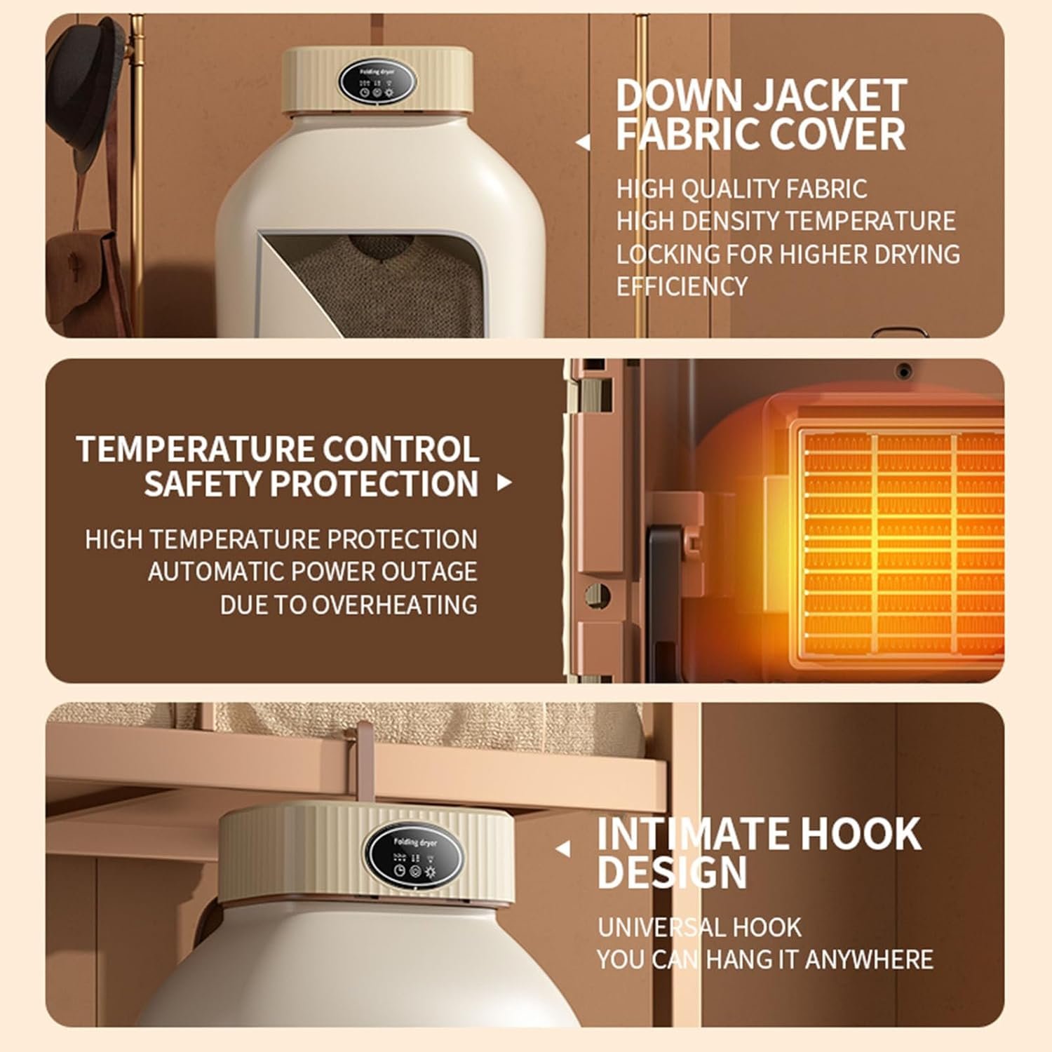 This foldable dryer is a great solution for drying clothes in small spaces such as apartments, dormitories, RVs, and while traveling. With its compact and foldable design, it can be easily stored when not in use. The timer function helps you easily set the desired drying duration. Use this convenient and portable dryer to help you dry clothes better and make your life easier.
