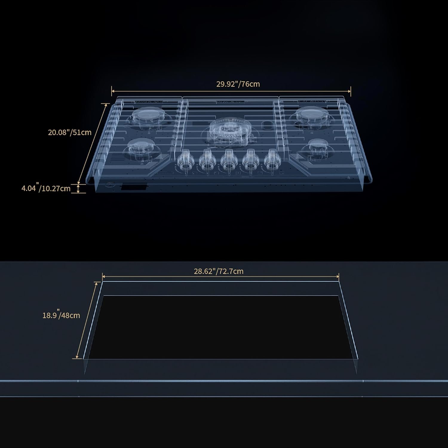 Compact Design for Seamless Installation:The Empava 30 inch gas stove cooktop features product dimensions of 29.92″W x 20.08″D x 4.04″H and cutout dimensions of 28.62″W x 18.9″D x 1.18″H. It comes with a pre-installed 110V power cord and LPG nozzles, ensuring a hassle-free installation for your kitchen.