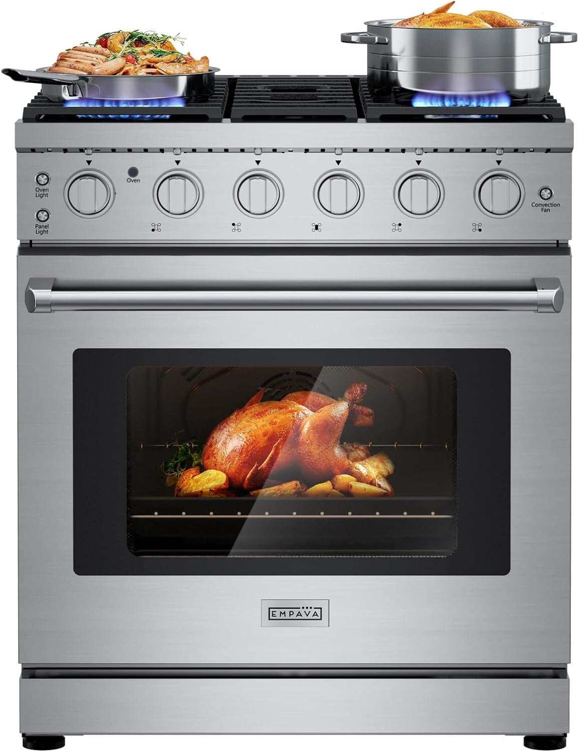 1 review for Empava 30″ Slide-In Freestanding Gas Range with 5 Sealed Burners, Cast Iron Grates and 4.55 cu. ft. Convection Oven with Mechanical Knobs Control in Stainless Steel