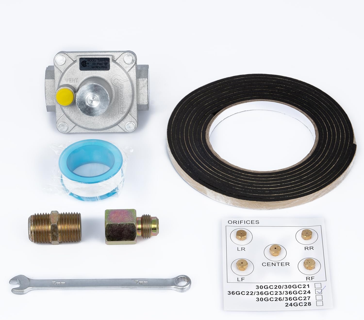 This is a nice looking, simple cook top which has the capacity to use natural gas or propane, although there are some technical challenges most people will face in setting this up. The biggest issue is the connection to the gas source. But more on that in a bit. First, you should know the top comes with the natural gas fittings inserted, but if you want to change to propane you must replace all the fittings, which are included with the unit. It is a simple matter to unscrew the NG fittings and screw in the provided LPG fittings. That’s the easy part. To hook this up to a gas source, however, is a challenge in the U.S. because there is no standard fitting for this. I had to gather a number of fittings together to get to the point of being able to hook it up to a propane tank. Here are some pictures of my set up. Here were the parts necessary:Hose Barb 1/2″ x 1/2″ (this was necessary because only these types of hose barbs seem to have the shallow depth of pipe fitting and a gas type compression fitting that would work. All other pipe fittings simply have too long of a depth female end to snug it up properly);Next was a 1/2″ piece of gas rated tubing (rated to 250 psi even though propane only runs about 1/2 a psi) with hose clamps;Next in line is a 1/2″ hose barb with a 3/8″ female pipe fitting on the other side;Next was a 3/8″ x 3/8″ flare adapter to change the female 3/8″ to a male 3/8″;Finally at the end is a 3/8″ nipple that changes the 3/8″ pipe screw to a 3/8″ thread that fits a propane regulator.