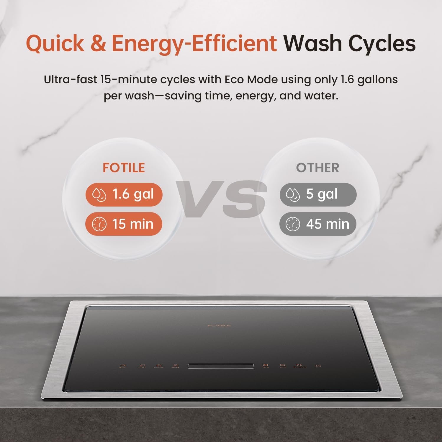 Quick & Energy-Efficient Wash Cycles: Enjoy ultra-fast 15-minute wash cycles and Eco Mode that uses just 1.6 gallons of water per cycle, saving time, energy, and resources.