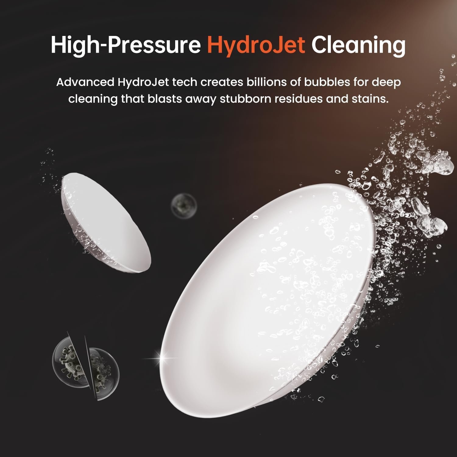 HydroJet Cleaning: Advanced High-Pressure HydroJet Technology generates billions of cavitation bubbles for powerful, thorough cleaning, removing even the toughest stains.
