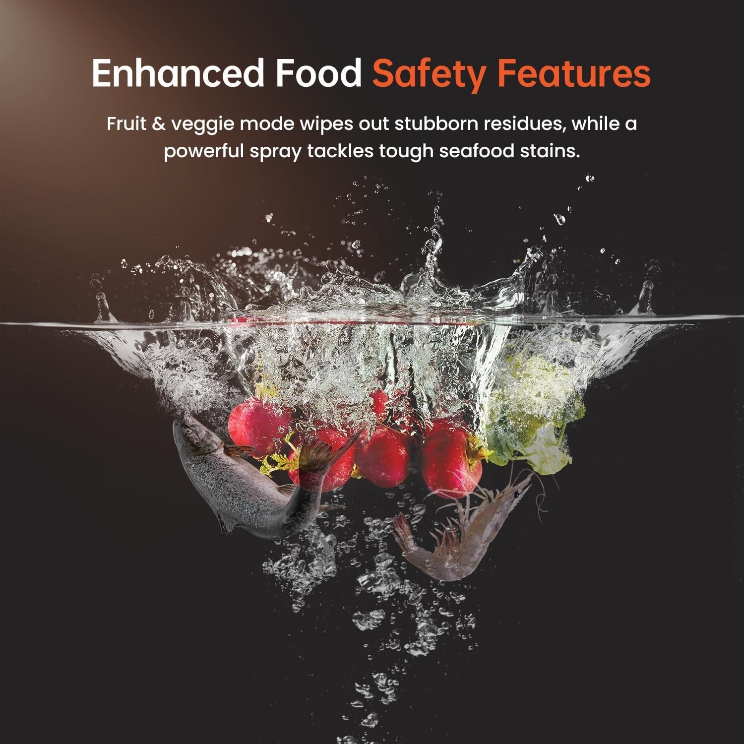 Enhanced Food Safety Features: Dedicated modes for fruits and vegetables ensure complete removal of residues, while powerful spray technology handles tough seafood stains effortlessly.