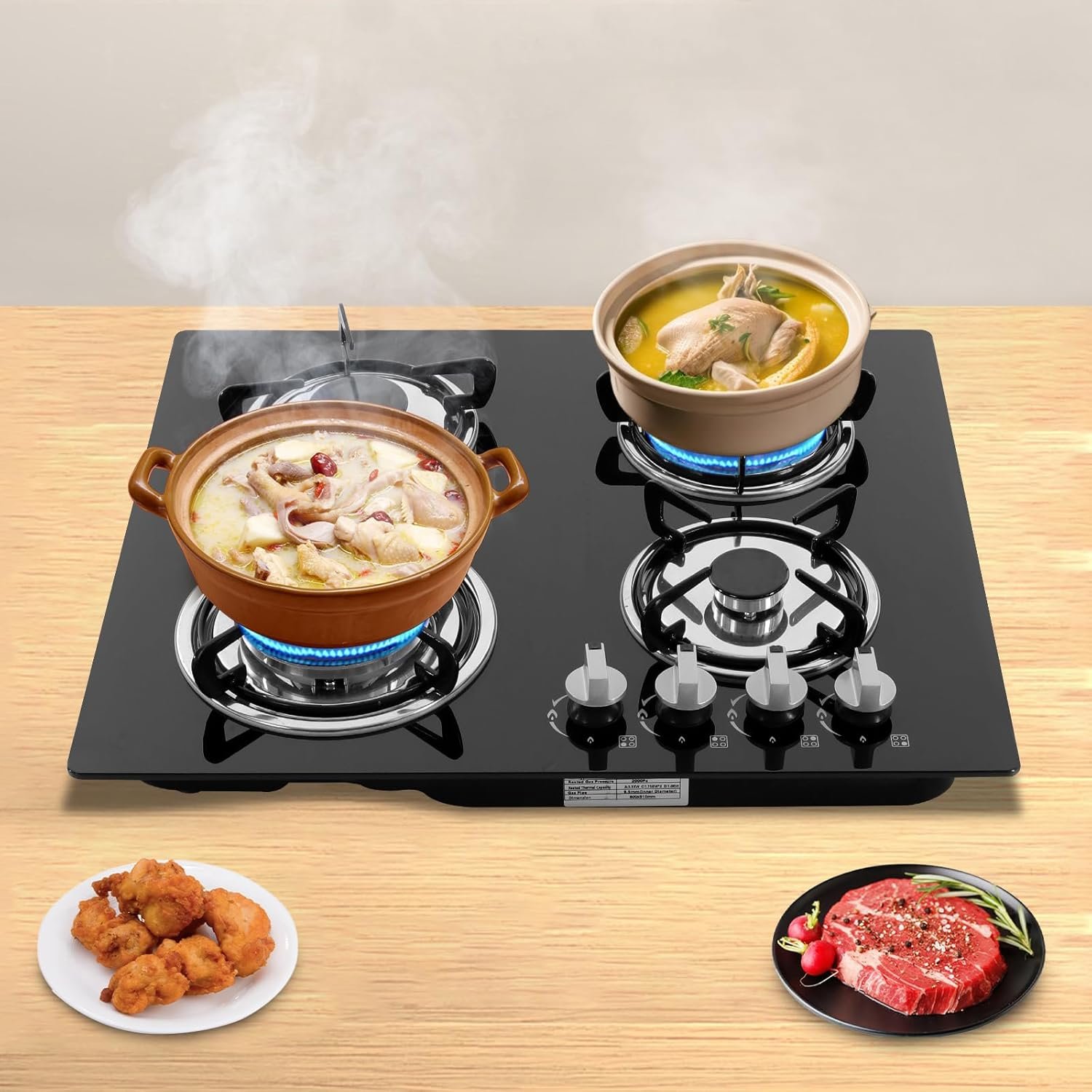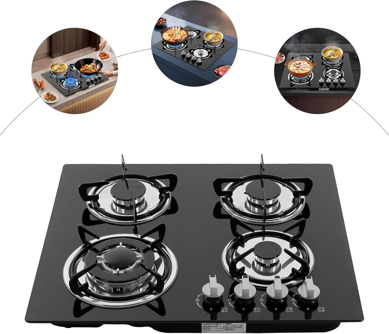✔【High Precision Fire Control】The gas stove has a 3.2KW and a 1.0KW burner, as well as two 1.75KW burners, and has independent control knobs that allow you to adjust between high and low heat. Whether it is slow simmering on low heat or stir-frying on high heat, this product can meet the needs.