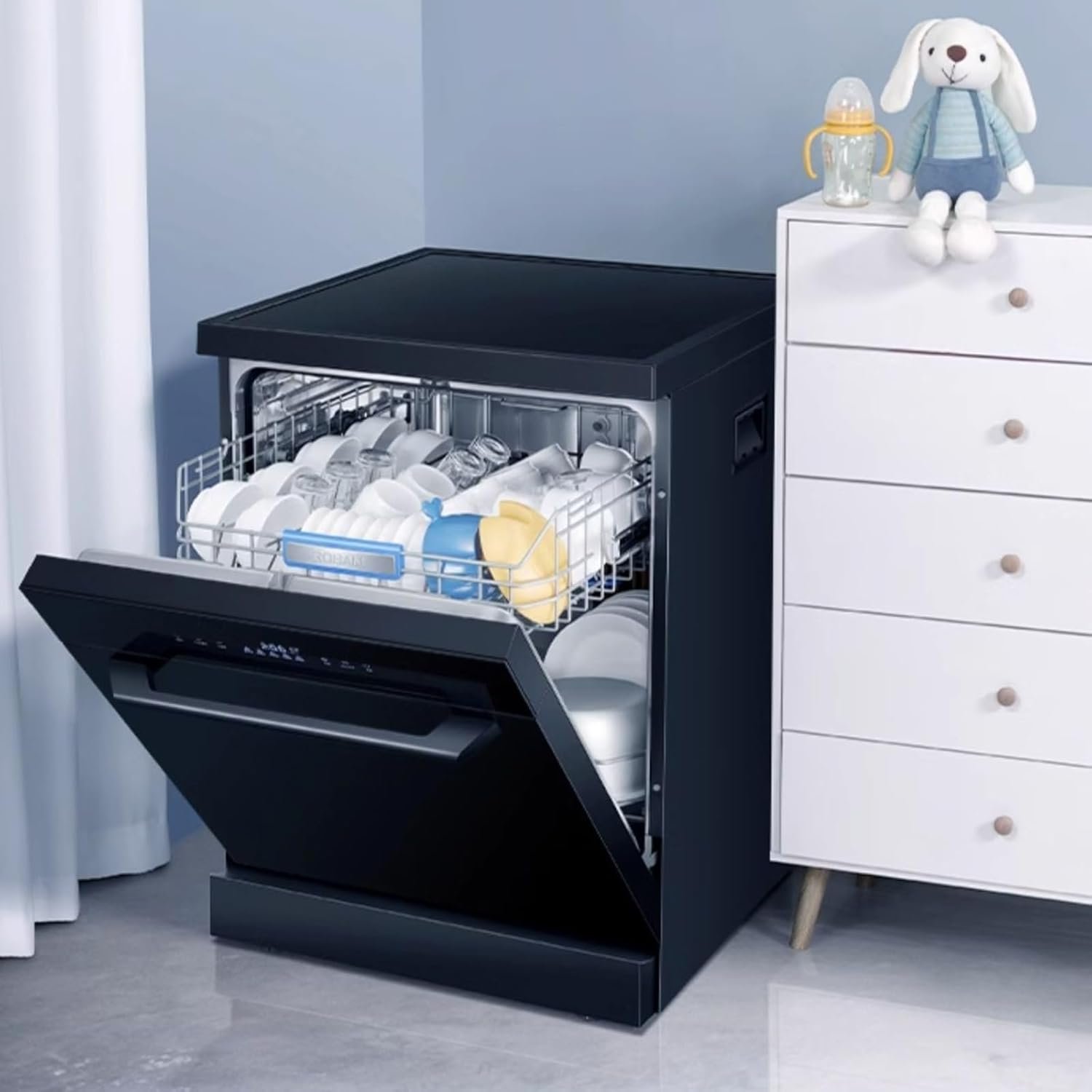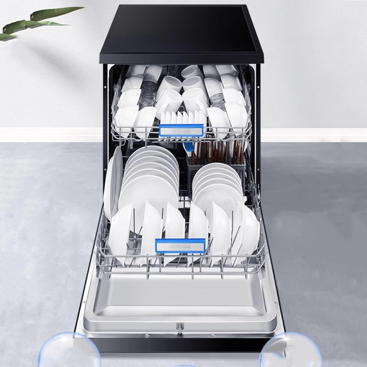 Places Setting: If your salad fork, serving bowls, baby dishes are made of ceramic, glass, or stainless steel, feel relieved to throw them into our dishwasher, relieving the dish load pressure for the whole family.