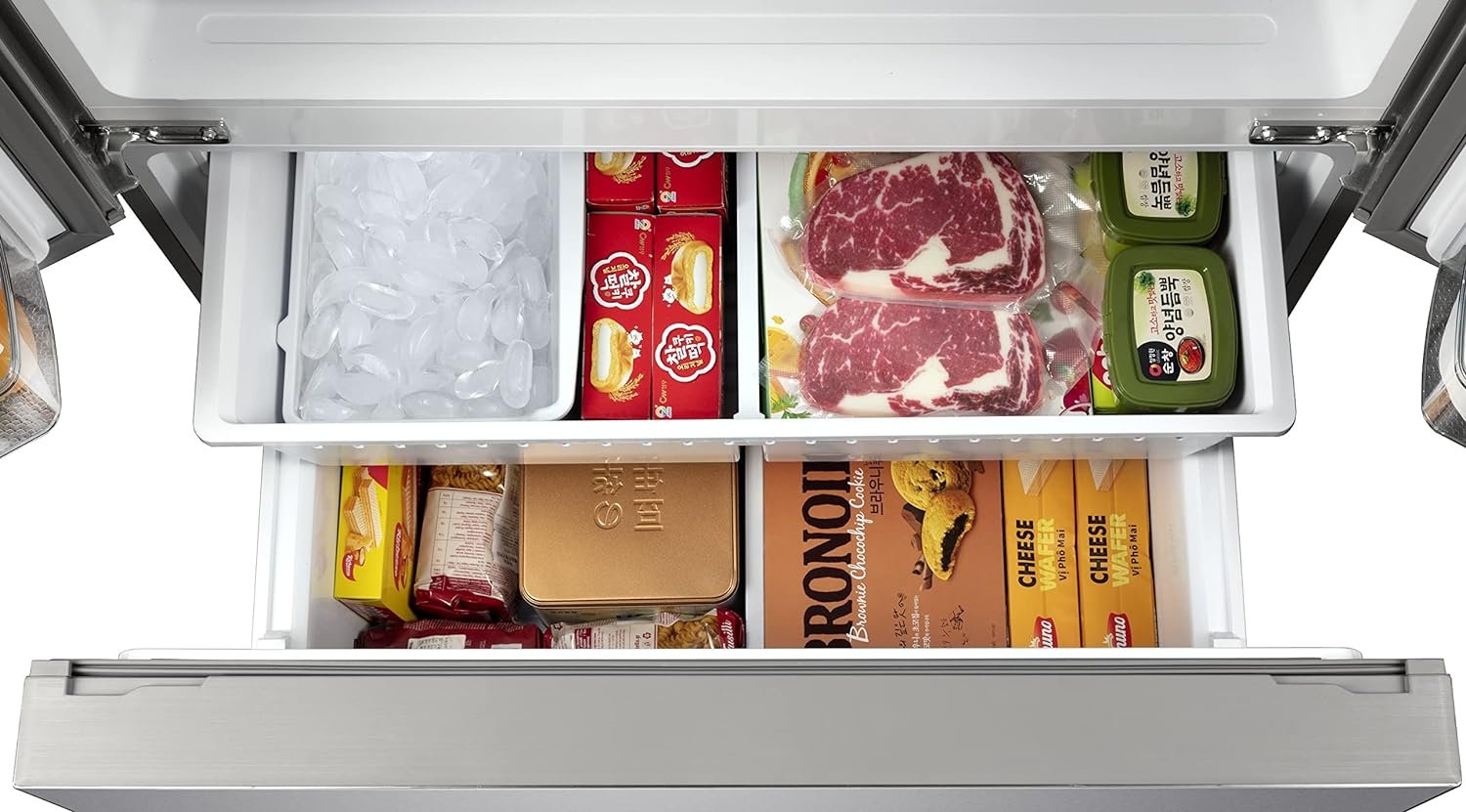 FREEZER COMPARTMENT: Full-width, fixed wire freezer shelf and door bin provide organized storage for frozen foods. Bright incandescent lighting illuminates your food and freezer compartments so you can see and easily find the right food item.