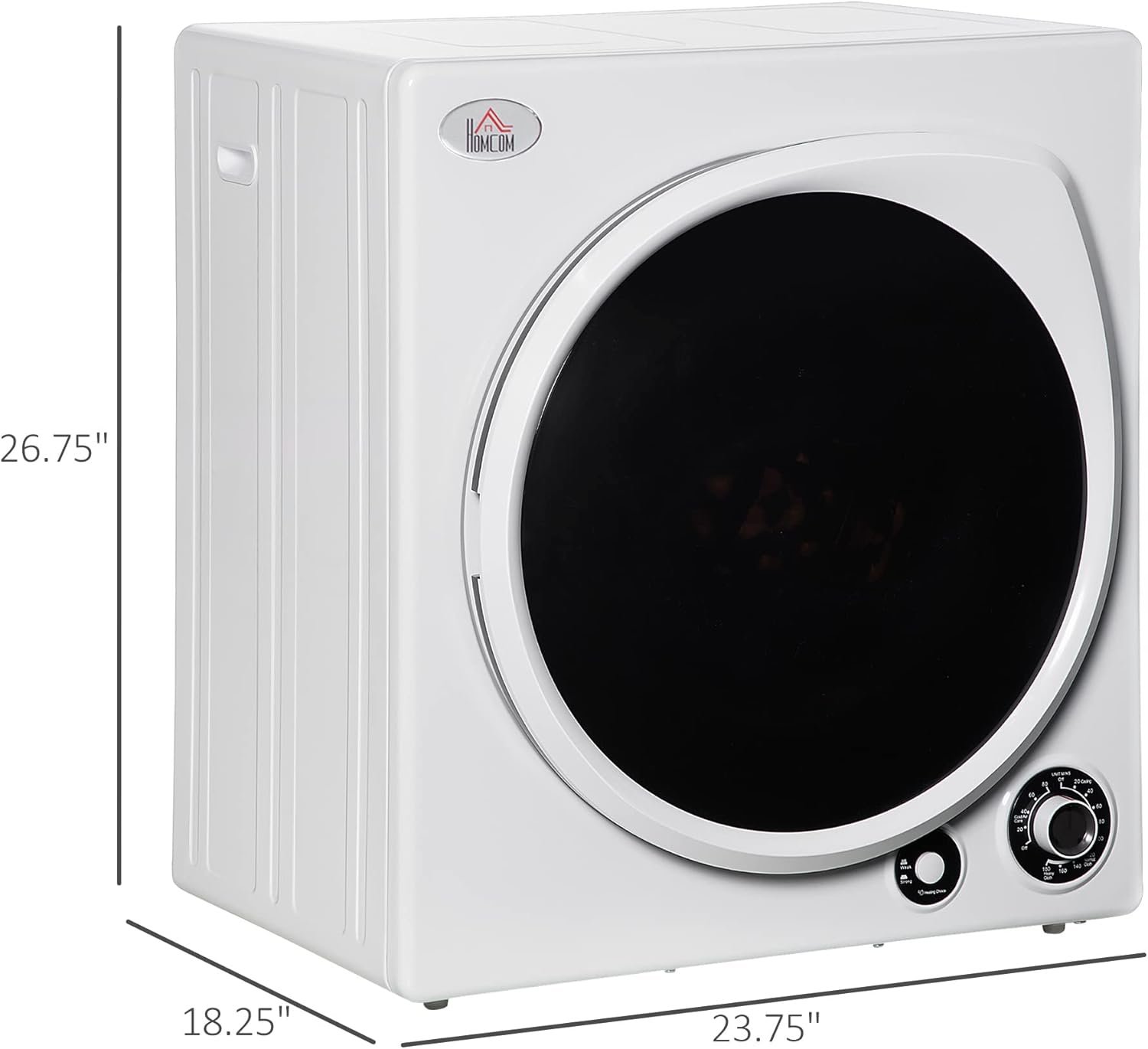 Compact & Portable: This portable clothes dryer weighs just 48lbs and is small. A compact size makes it a perfect choice for flats, dormitories, and more. It can be placed on the flat ground alone, or stacked on a washing machine. Additionally, it can be hung on the wall with the wall brackets (NOT INCLUDED).