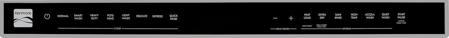 Get the cleaning power your dishes need with the Kenmore Built-In Dishwasher. This 24″ dishwasher makes it easy to get the right wash for your load every time with SmartWash Cycle, which detects the amount of soil in the water and automatically adjusts the temperature, amount of water, and duration of the wash accordingly. Featuring UltraWash and SmartDry systems, this dishwasher uses 2 spray arms while constantly filtering the wash water through the wash cycle and uses hot water to promote the condensation of moisture in the tub for ready-to-use, sparkling clean and dry dishes at the end of the cycle. To ensure problem-free dishwashing, the Leak Detect System conveniently measures and monitors water flow at various points of the cycle. If a problem is sensed, the dishwasher will automatically drain the tub and alert you when necessary. Functional and attractive, the stainless steel tub resists food stains and retains heat for an optimal drying performance each cycle while also making for a stylish addition to any home kitchen. Operating at 57 dBA, this low-noise dishwasher offers ultra-quiet wash cycles to make it easy to enjoy after-dinner chats and clean up around the kitchen, and it’s Energy Star Certified to help you save money while using less energy each cycle.