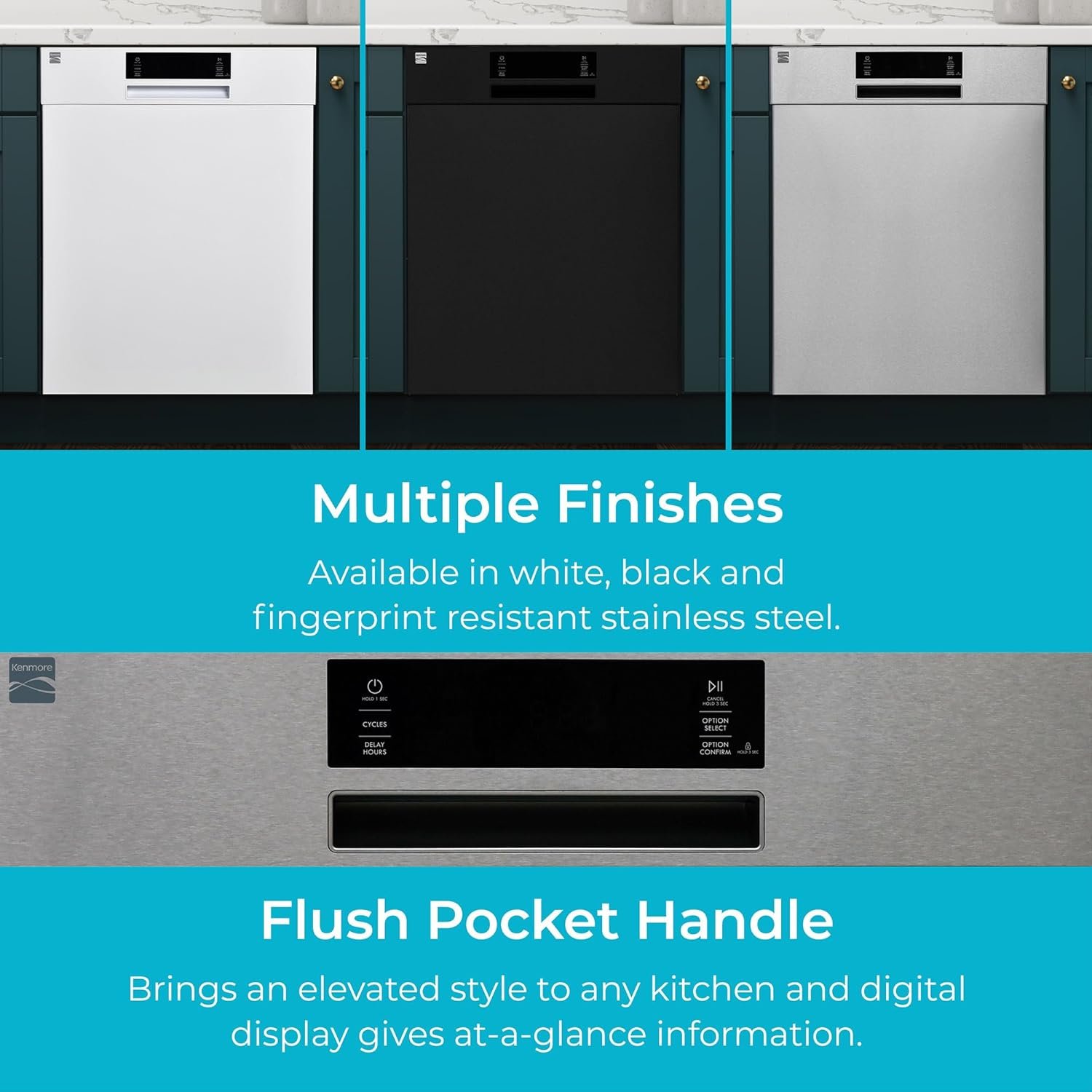 Get the cleaning power your dishes need with the Kenmore Built-In Dishwasher. This 24″ dishwasher makes it easy to get the right wash for your load every time with SmartWash Cycle, which detects the amount of soil in the water and automatically adjusts the temperature, amount of water, and duration of the wash accordingly. Featuring UltraWash and SmartDry systems, this dishwasher uses 2 spray arms while constantly filtering the wash water through the wash cycle and uses hot water to promote the condensation of moisture in the tub for ready-to-use, sparkling clean and dry dishes at the end of the cycle. To ensure problem-free dishwashing, the Leak Detect System conveniently measures and monitors water flow at various points of the cycle. If a problem is sensed, the dishwasher will automatically drain the tub and alert you when necessary. Functional and attractive, the stainless steel tub resists food stains and retains heat for an optimal drying performance each cycle while also making for a stylish addition to any home kitchen. Operating at 517 dBA, this low-noise dishwasher makes it easy to enjoy after-dinner chats and clean up around the kitchen, and it’s Energy Star Certified to help you save money while using less energy each cycle.