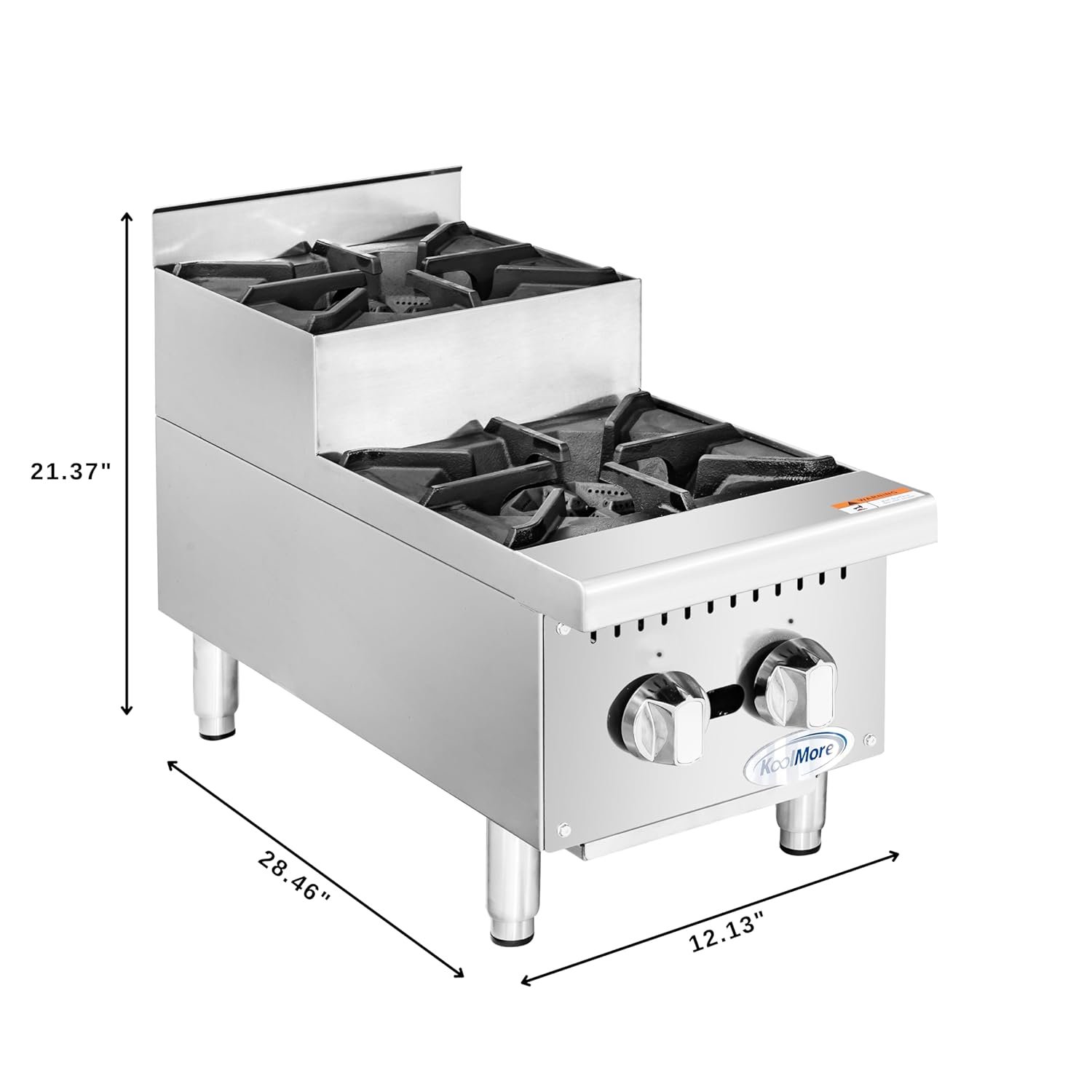 KoolMore KM-CRSU-12 12 in. Two-Burner Commercial Step Up Range, 52000 BTU,ETL Listed in Stainless-Steel