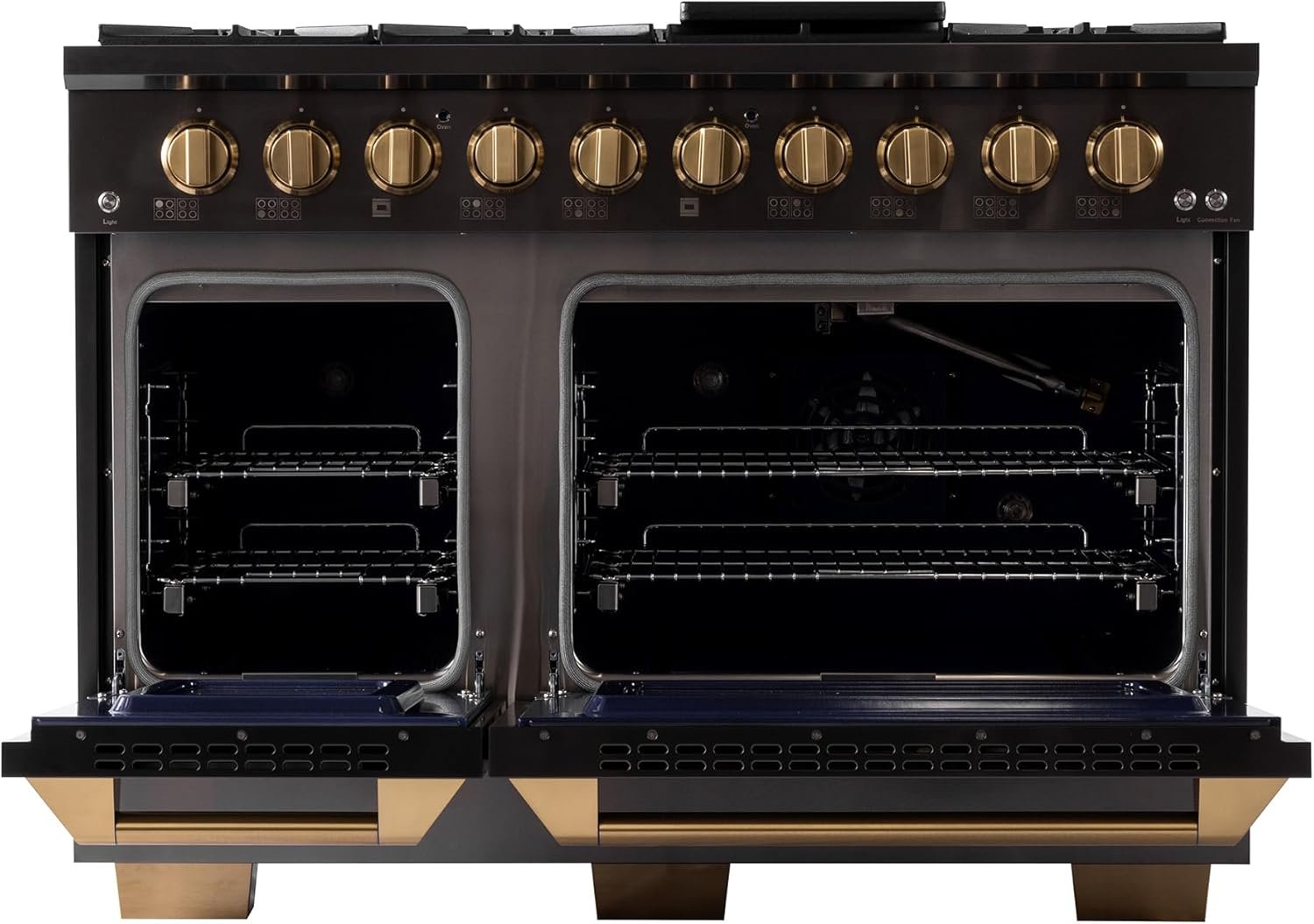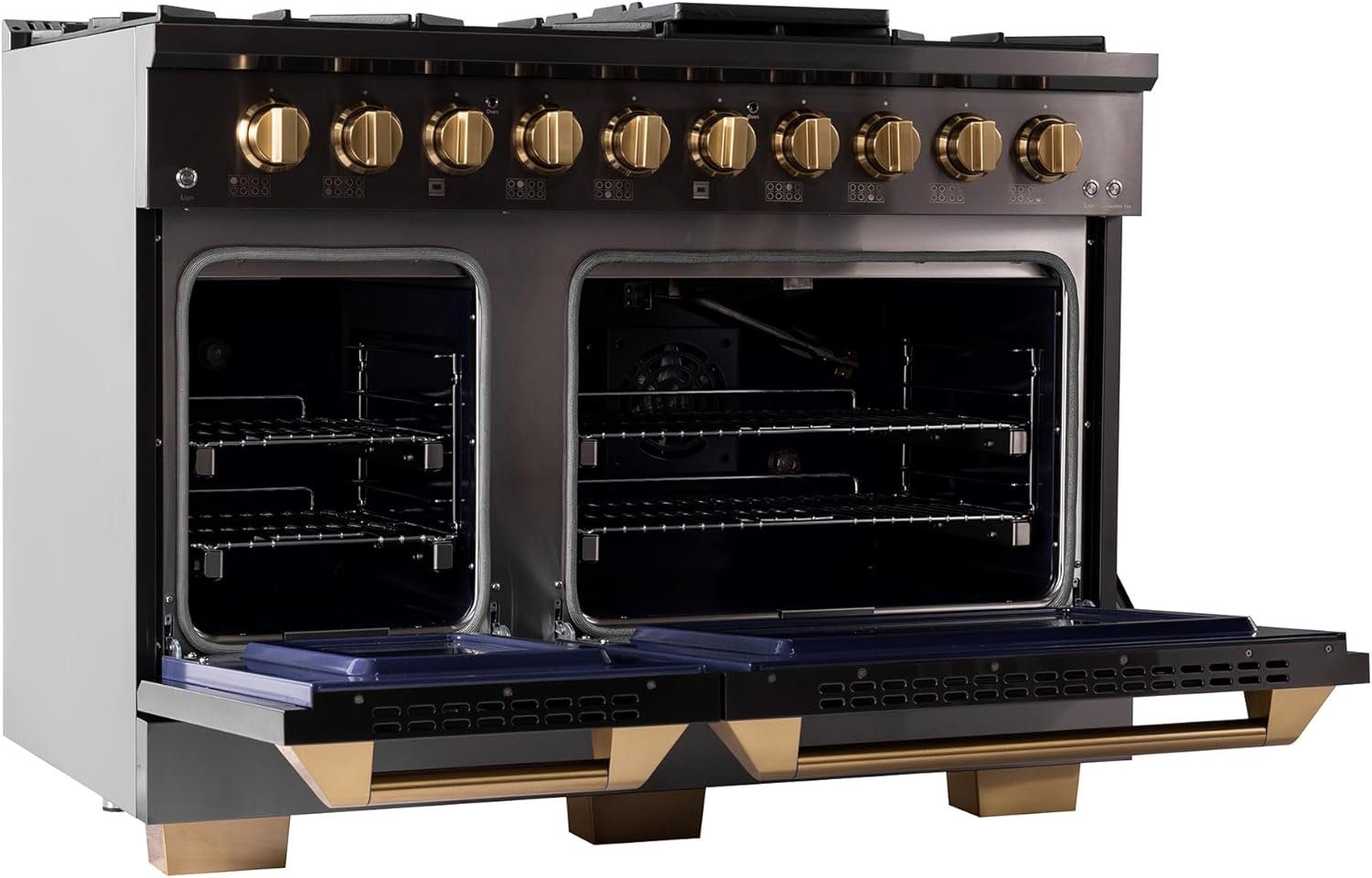 Cook and bake like a pro with 2-separate ovens with large oven windows, the main is a heavy-duty blue porcelain oven with 4.2 cu. ft. of capacity while the additional side oven has 2.5 cu. ft.