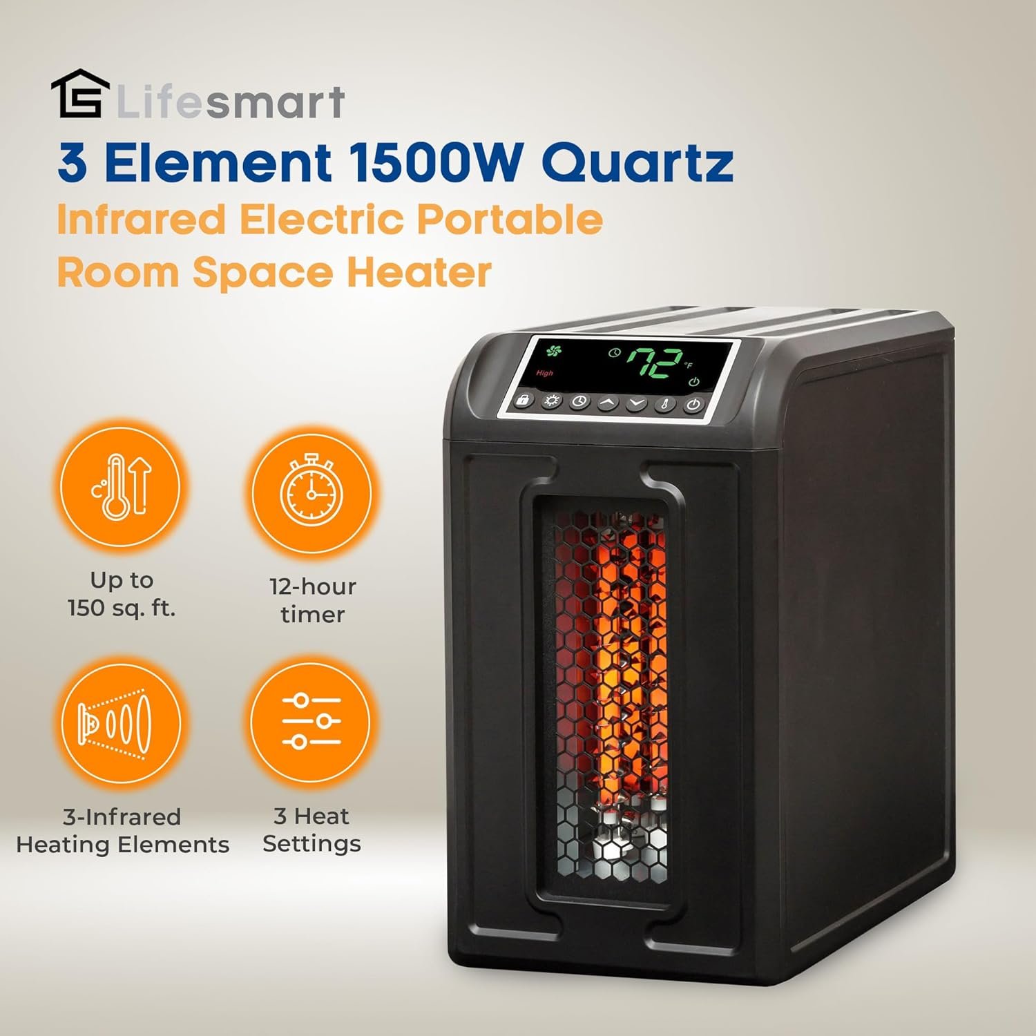 Enhanced Functions: Equipped with 3 superior wrapped quartz infrared heating elements and offering 3 heat settings low, high, and ECO; Features a 12-hour programmable timer, extra-large LED display, and thermostat control system for enhanced convenience and control