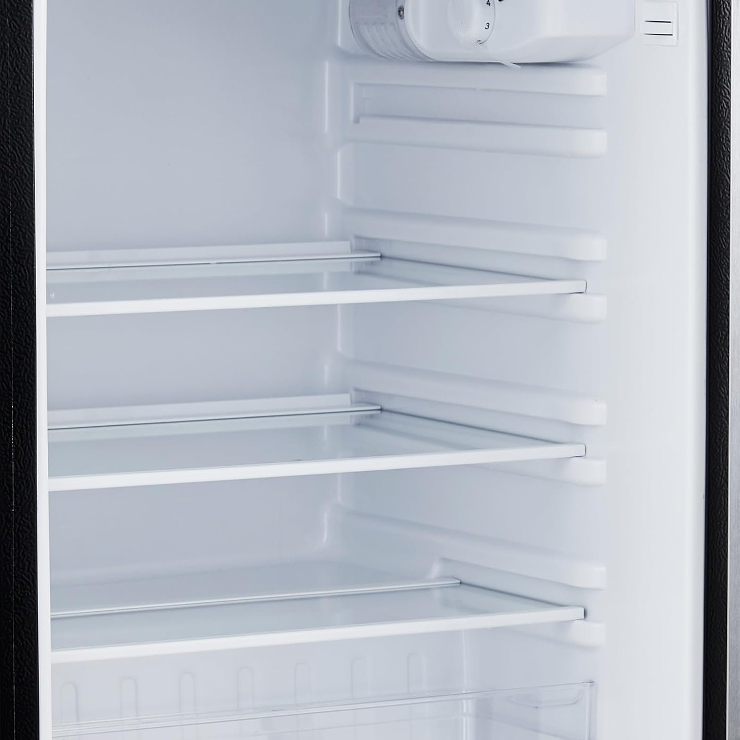 Capacity: 4.5 Cubic Feet RefrigeratorSeparated Top Freezer Compartment3 Slide Out Glass ShelfCrisper DrawerBeverage Can DispenserAdjustable ThermostatQuiet Operation