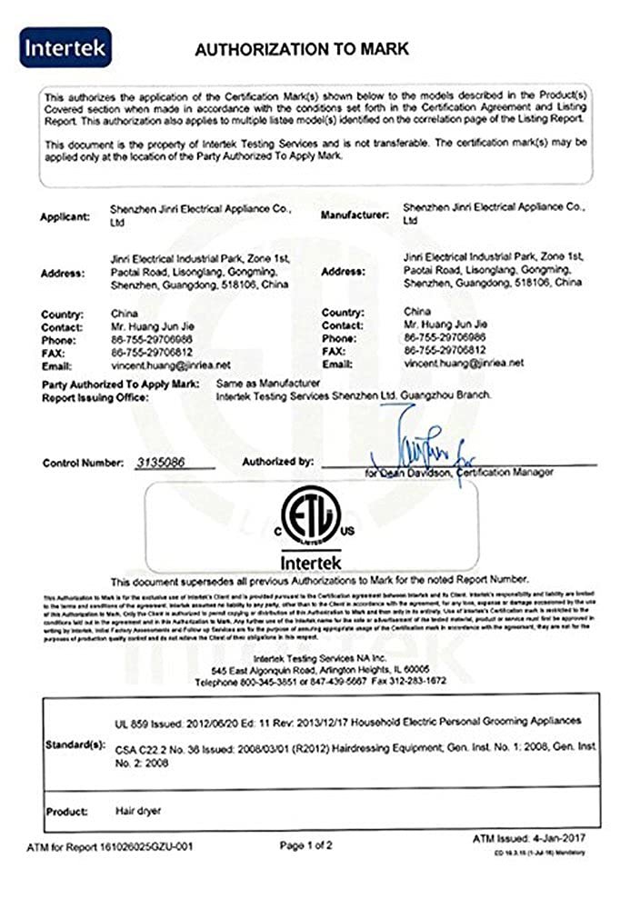 Manufacturer : Shenzhen Jinri Electrical Appliance Co., Ltd