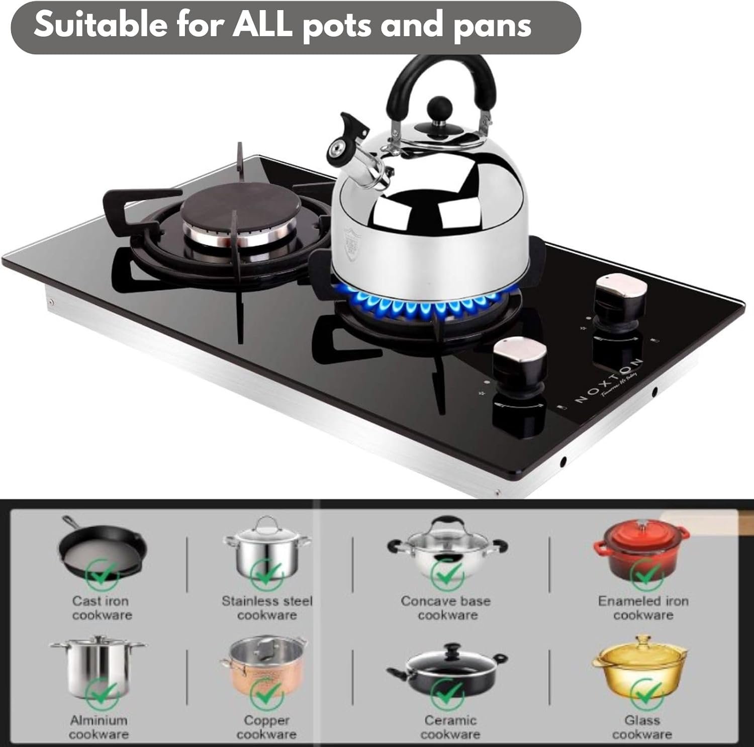 13 reviews for Noxton Gas Cooktop 2 Burner, 12 inch LPG/NG Dual Fuel Built-in Gas Stove Top, Tempered Glass Propane Cooktop for RVs, Apartments, Outdoor