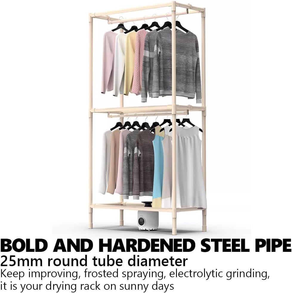 ❤ Large-capacity clothes dryer: Our clothes dryer adopts a double-layer detachable design, made of high-quality cotton and linen fabrics, not afraid of humidity and heat, and you can store more clothes and long coats inside. The 25mm painted steel pipe makes its structure very stable, with a load-bearing capacity of up to 200kg!
