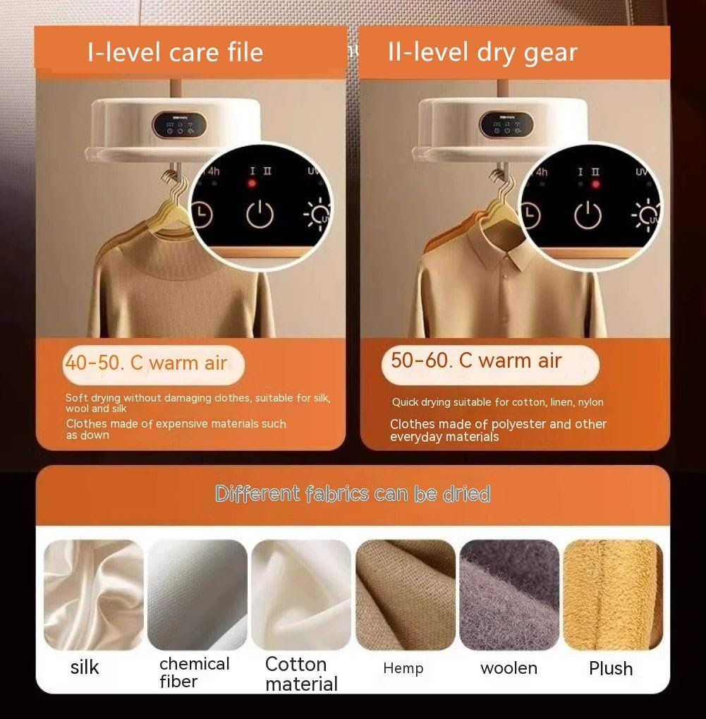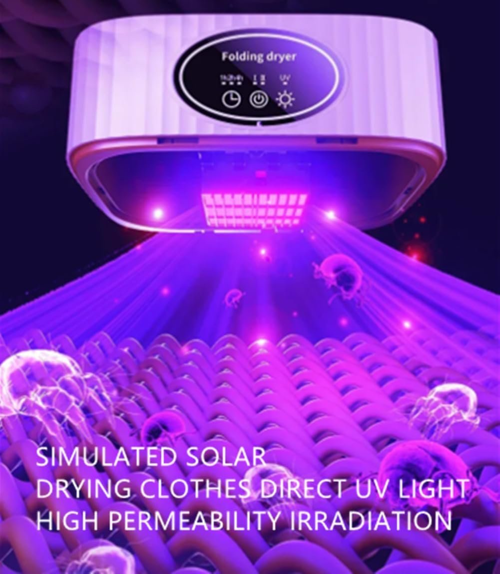 Deep Cleansing with LED UV: Our electric portable clothes dryer goes beyond drying. It features a built-in LED UV system that revitalizes your garments, leaving them impeccably clean and fresh.