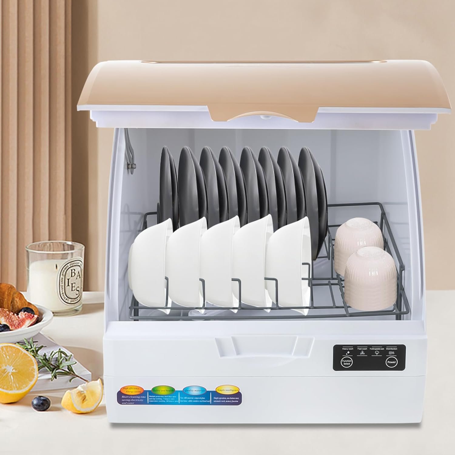 🍴【Multi-function Options】: There are heavy wash, fast wash, fruit and vegetable washing, and disin-fection functions to choose from.You can freely choose the functions according to your needs.