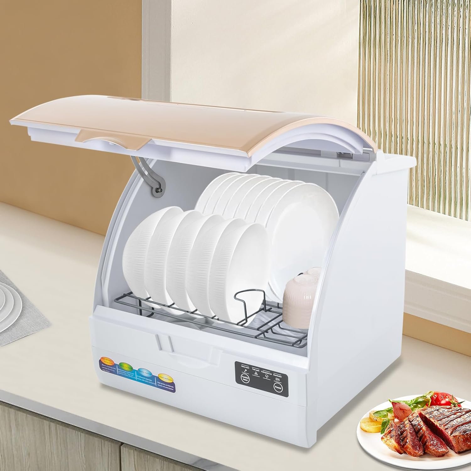 Portable Countertop Dishwasher, Compact Tableware Washing Machine, 360° Spray Dishwasher for Apartments, 167℉ High-Temperature Wash, 4 Option Functions