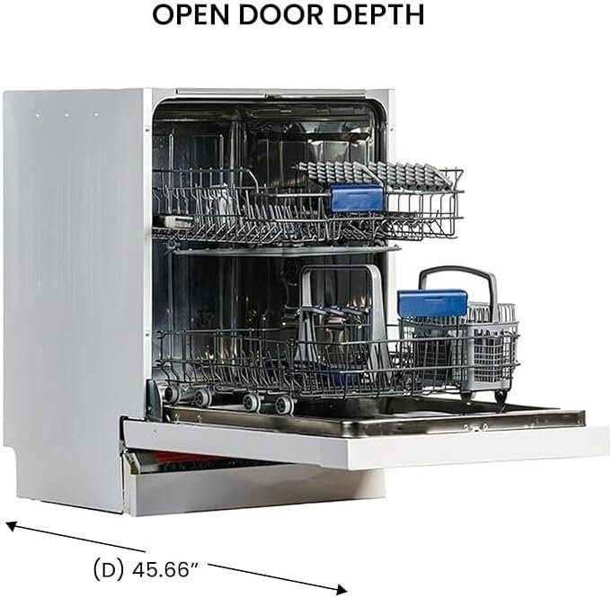Renaissance Refinement Appliances Front Control 24-in Built-in Dishwasher (White) 22.4″ D X 23.5″ W X 32.3″ H, Adjustable Tine, Auto Program, Adjustable Rack – Length:164 164