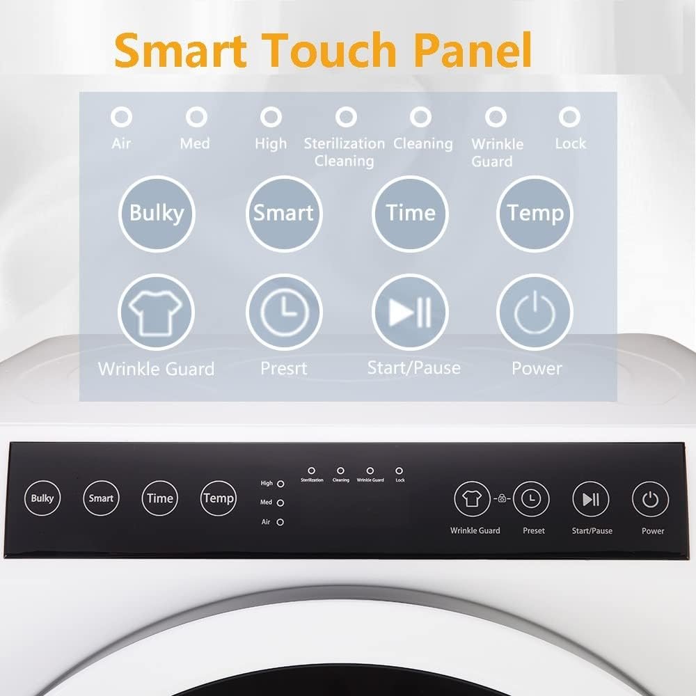 【Innovative LCD Touch Screen】Equipped with a high technology, this clothes dryer is different from the knob control of traditional dryers. It is equipped with a sensitive touch screen to control multiple drying modes and temerature levels