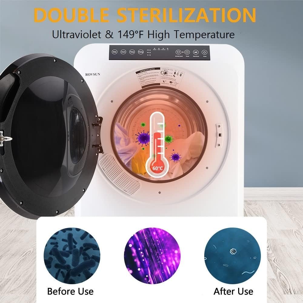 【Powerful Performance】This electric dryer is featured with 1300W power and large capacity, maximum temperature can reach at 140°F for ensuring your clothes to be dried quickly; no worry for clothes drying even though it lasts rainy
