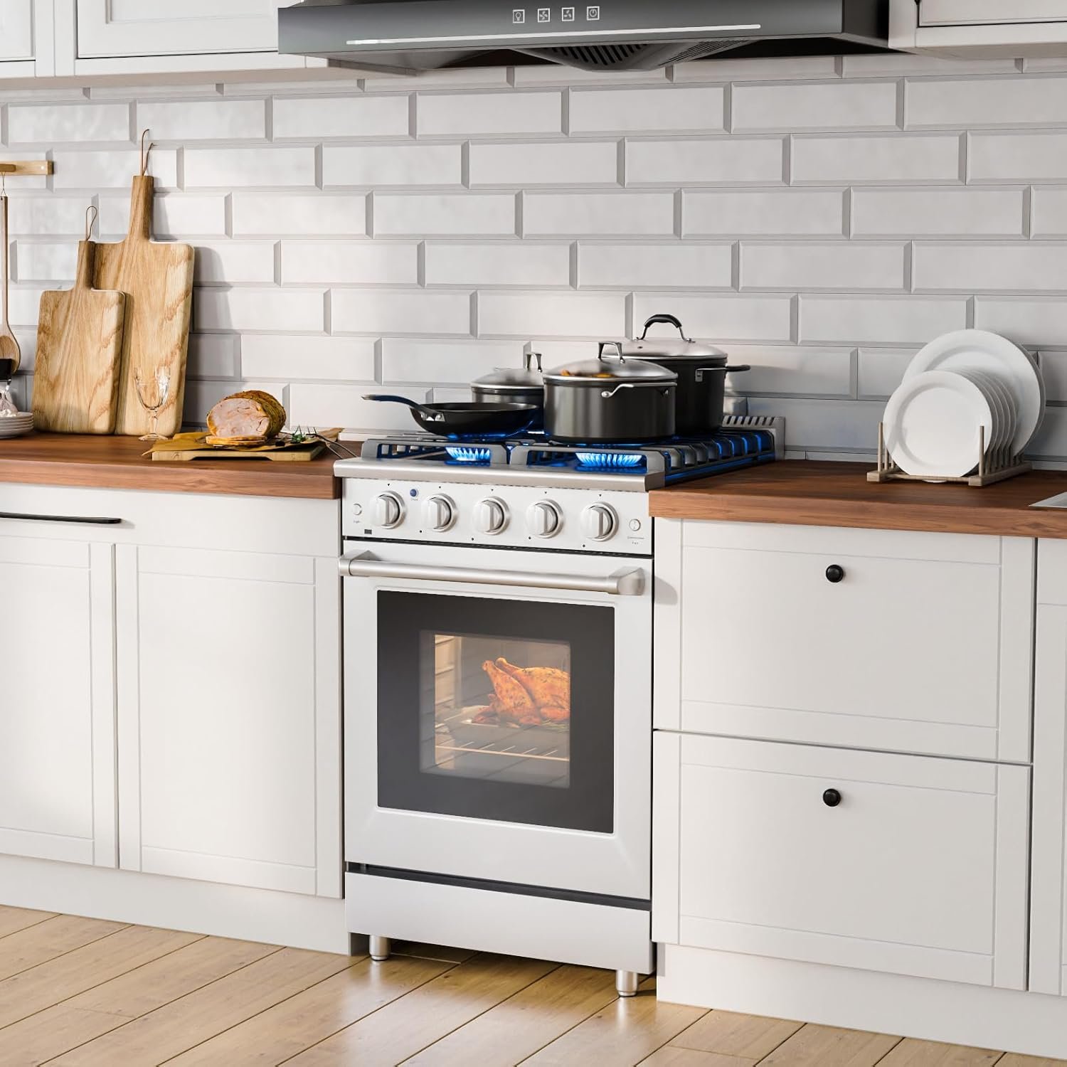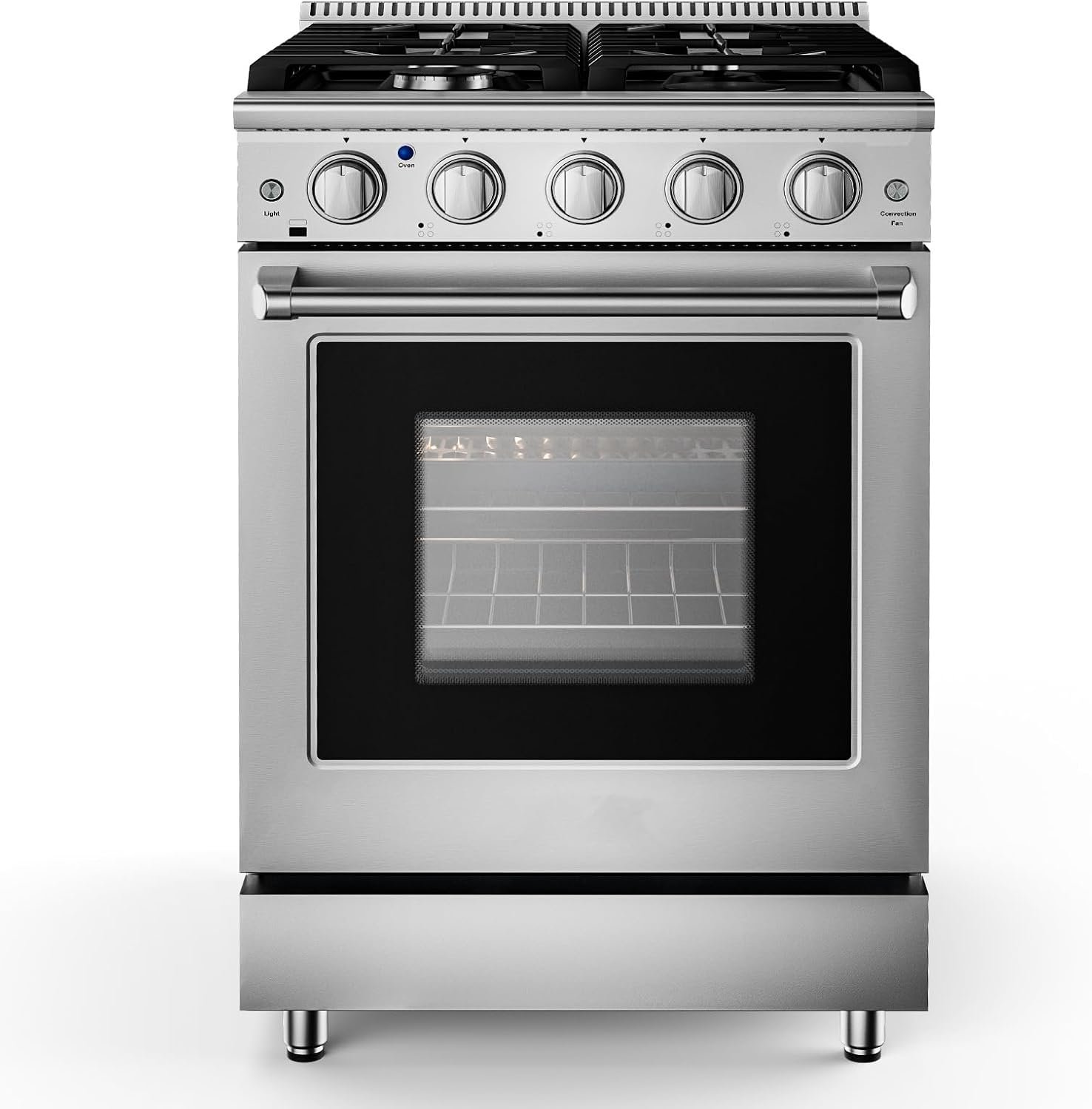 High Efficiency Gas Convection Range: With 2 heating element and fan that circulates hot air throughout the entire oven, providing consistent temperatures for crisp, flaky baked goods, juicy, well-browned roasts and flavorful, caramelized vegetables.