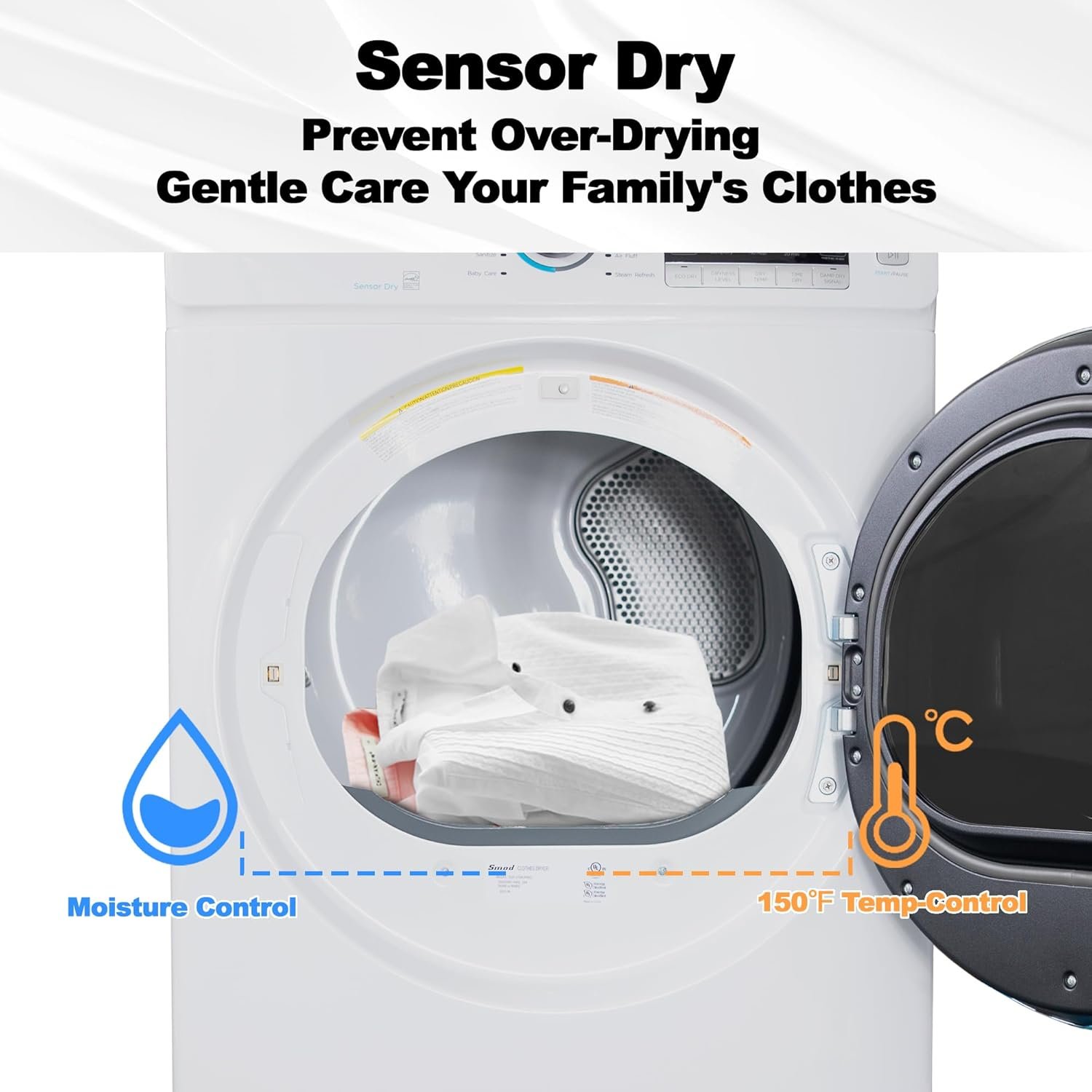 Sensor Dry: The clothes dryer can automatically detect the drying condition of the clothes. Optimize the temperature and time of drying. Protect your family’s clothes from excessive heat or excessive drying