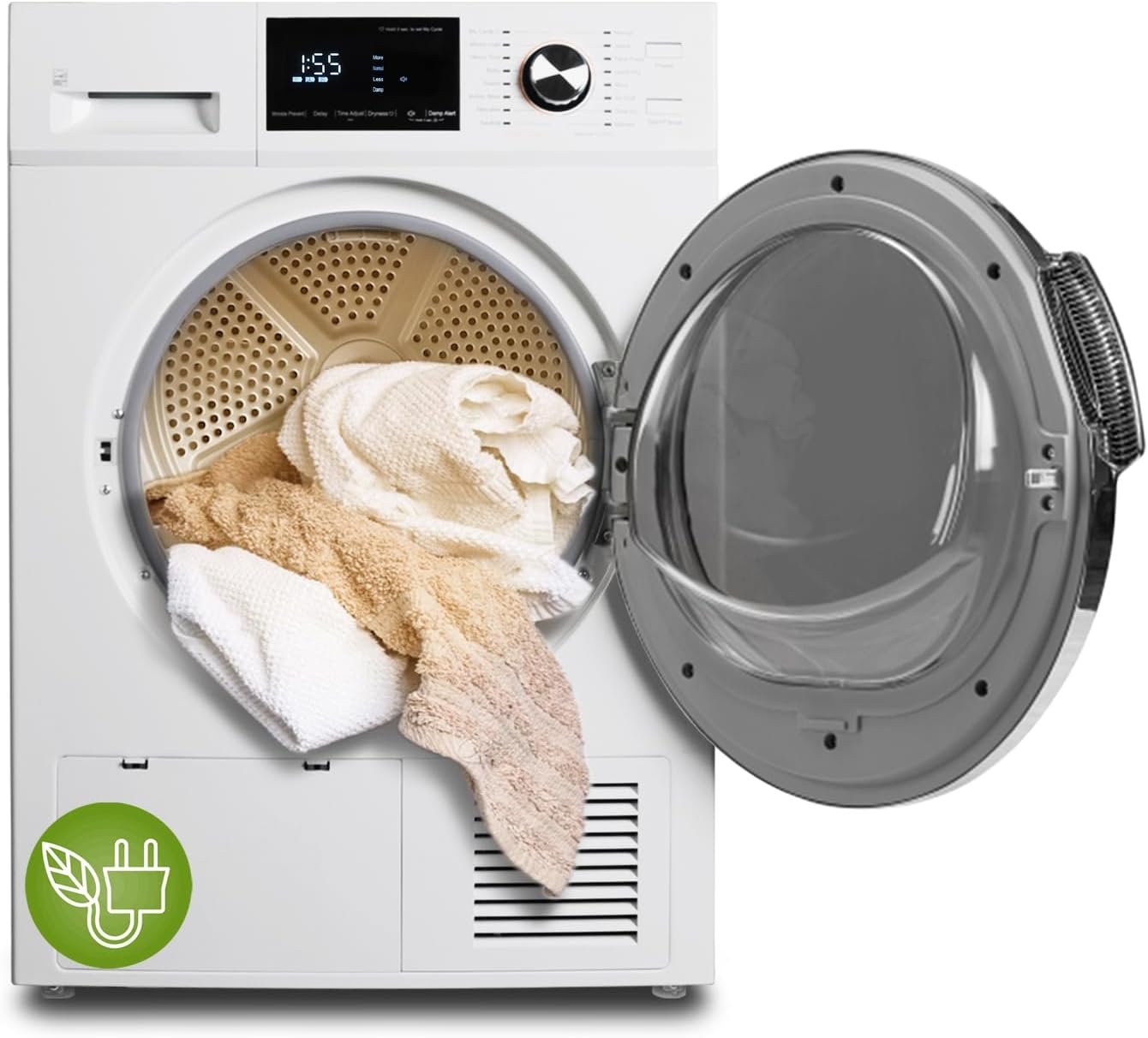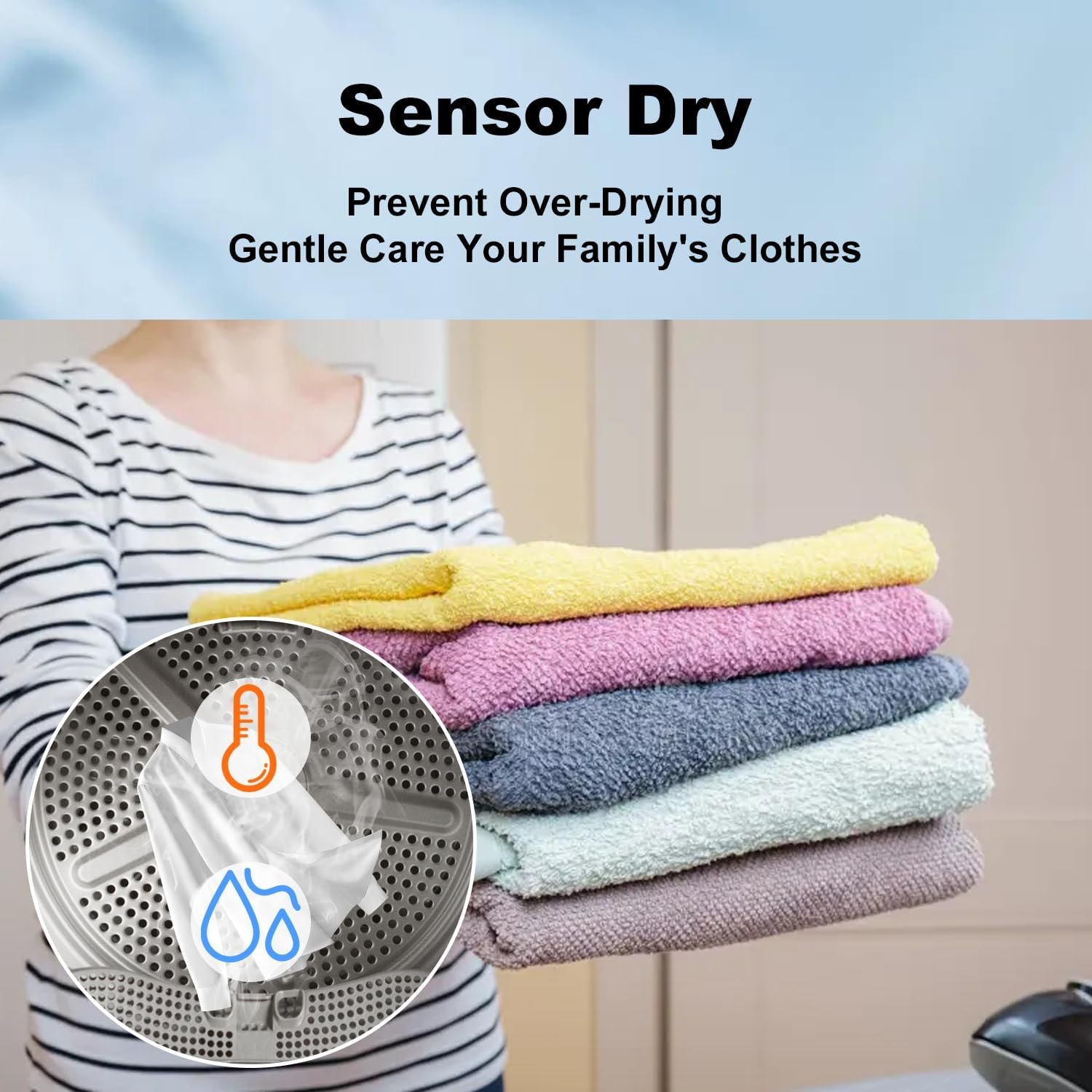 【Sensor Dry】: The electric dryer machine can automatically detect the drying condition of the clothes. Optimize the temperature and time of drying. Protect fabrics from excessive heat or excessive drying