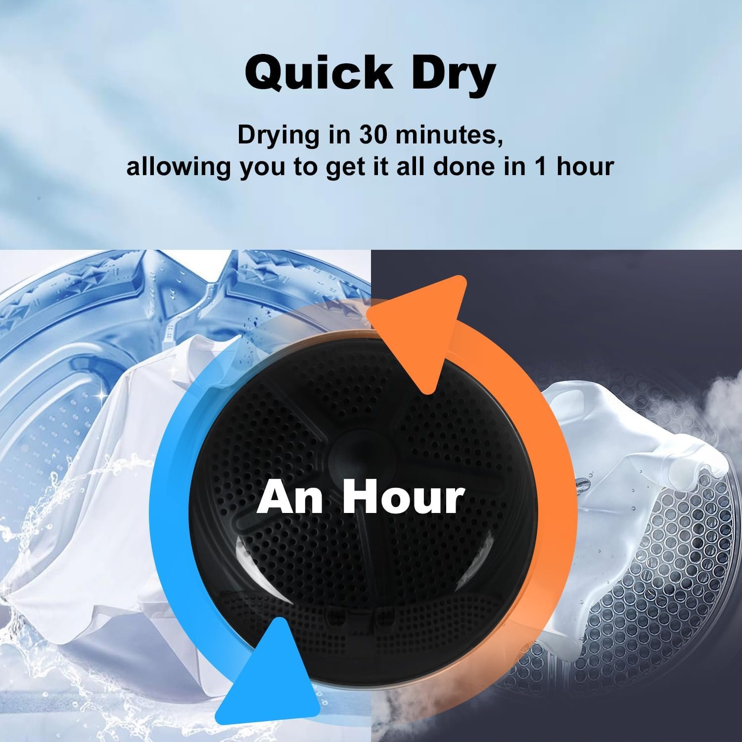 【Drying without Waiting】:The Quick Dry Cycle takes only 30 min to dry 3/4 full load of laundry, You can also adjust or set My Cycle according to your needs