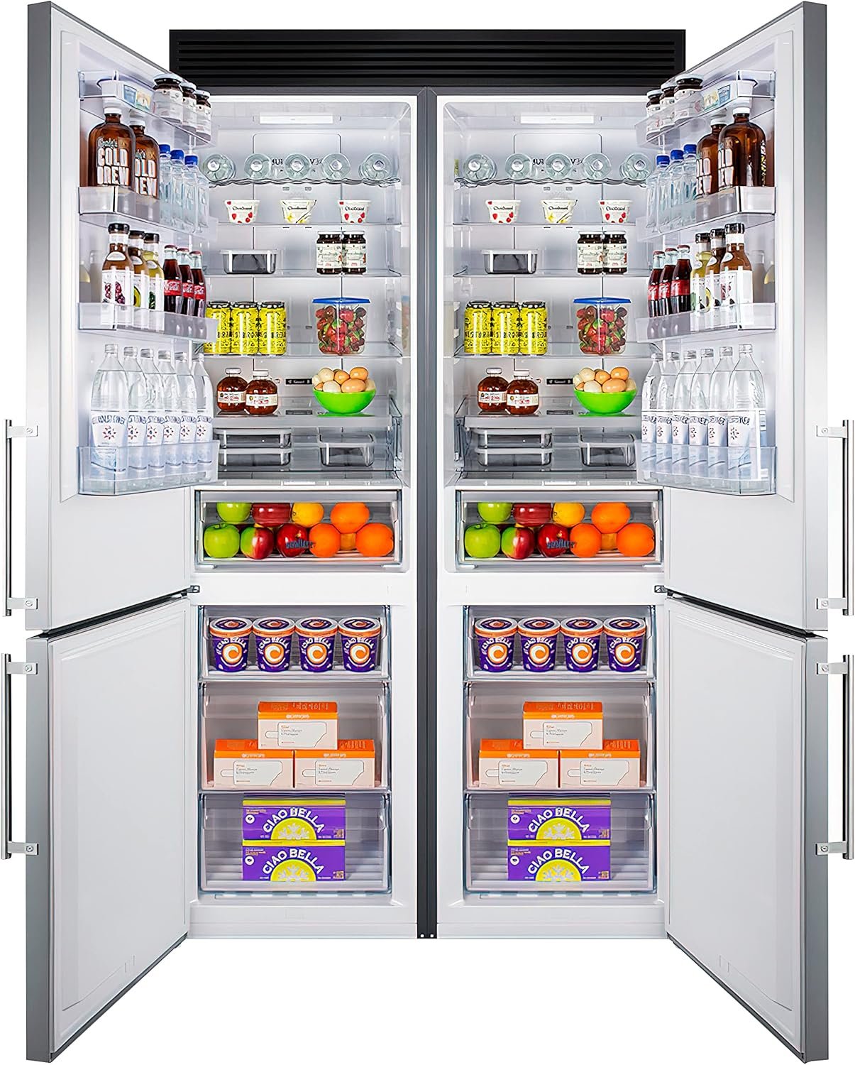 Summit Appliance FFBF181ES2KIT48 48″ Wide Bottom Freezer Refrigerator Set; Set Includes: FFBF181ES2 and FFBF181ES2LHD Bottom Freezer Refrigerators, and Decorative Top Grill (GRILL48B); No-frost