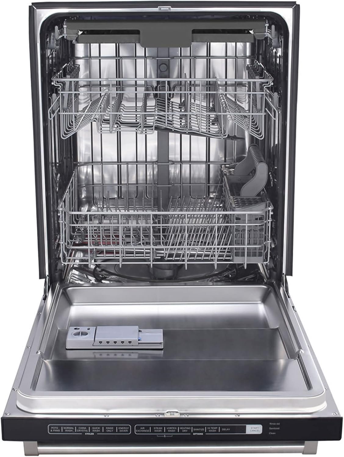 Ordered this sight unseen from Amazon. Ordered on a Saturday and it was here on Monday. Replaced a Kitchen Aid that was so poorly designed that the soap dispenser was blocked from opening if you loaded the lower rack fully. Every plastic part was brittle and kept breaking and I had to tear it down and manually clean the food chopper every week. I did not want to go the KitchenAid/Maytag/GE/Westinghouse/Kenmore route ever again since every appliance we have owned by them has had significant problems. I took a leap of faith and ordered this Thor Kitchen. I could not find many reviews but the ones I found were positive.Packaging was quite sturdy and the dishwasher arrived with no problems. There is water inside but apparently this is normal for new dishwashers. Installation was not too difficult. My husband had a question about a cpvc outlet and was not sure what it was for. I called the support number and immediately was connected to a real person in California. He explained that the dishwasher has a air cycling feature that can be used if the dishwasher is not going to be used for a few days to keep the interior fresh and it was the air intake. He also reminded me to call back and register the dishwasher for warranty purposes. The instructions that came with the dishwasher were rudimentary but I searched the internet and found better ones.There are more features than Amazon listed and these are a pleasant surprise. The silverware holder is modular and breaks down into 3 sections. I have yet to need all three. I use the 2 smaller side pieces and tuck them where ever they fit. These seem to made of much thicker nicer material than the one in my KitchenAid. The bottom rack has half with tines that can fold out of the way to accommodate large items. The upper rack can used in two positions but the higher position limits the height of glasses somewhat. I use it on the lower position almost all the time and have plenty of room for tall things in the bottom rack. The upper rack also has some flip down racks to hold stemware in place. The third top rack is wonderful for knives, lids and small things. It doesn’t get quite the spray pressure as down below so really gunky things may not come clean as well as the stuff on the other racks, but this is minor. I love being able to get my knives washed and sanitized without them touching other things and getting dull. There is a ‘vortex’ clean feature. In the corner on the bottom, there is a small spinner spray. When you have a really dirty pot, you put it in the rack over this spinner and select vortex. It uses a high pressure directed spray to clean what is right above it. I have used it a couple times and it works.This is the first dishwasher we have had where the dishes don’t completely dry even with the heated dry option. We got some rinse aid (which as an adjustable release feature) and problem solved. The plate racks on the bottom rack are very closely spaced which is nice to hold a lot of plates but if one is super dirty, I skip a rack so it gets more spray.The control panel is on the top of the door so it is hidden when it is closed. It took a little while for my husband to figure it out (he did not read instructions) but you have to select all the features you want (can add a delay to the start time if you wish) and then push start and then close the door. It starts then. You can’t close the door and push start (which had him convinced it was broken for the first couple hours). The display tells you how many hours and minutes the cycle will take and most are 2 plus hours. When the dishwasher is running the top display goes dark and a band of blue lights on the front of the dishwasher illuminates as it works through the cycle. The band gets longer as the cycle progress so you can tell at a glance what percentage through the cycle is. If you want the exact amount of time left, you just touch the top panel start button and it will display how many minutes are left in that cycle. It is so quiet that when it was running, I thought I heard water boiling but it was the dishwasher doing its thing.The dishwasher is very sleek and nice looking. It seems to be well made and sturdy. The handle is large and industrial but seems very strong. It sticks out further than our old dishwasher, which just had a hand hold recessed in the door, so this new handle impeded the opening of the cabinet on the wall next to the dishwasher. My husband’s initial thought was to send it back and get a different style. Mine was, “take the dag on door off the cabinet and get my new dishwasher installed!” I got my way. He ended up modifying the door so it is hinged differently.Bottom line-no regrets.Update: After 20 months: You need to make sure that you manually clean the filters. It is easy to do, at the bottom of the dishwasher (easy to get to without removing anything) there is a gray cylinder filter to catch big debris. Twist and it unlatches. Then lift out the steel mesh (hooks under two tabs toward back of dishwasher). Finally, pull out a very fine mesh filter (loose cylinder down in hole). Rinse all three and put back. This is quick and easy and I do it every week or two, depending on how well I pre-rinse my dishes (which I don’t) and when ever I see any debris not rinsed off of the glasses. I prefer doing this to having the built in food chopper of the kitchen aid which failed and was a nightmare to clean. I found the combo of pots/pans, steam wash, and heat dry gives me the best results. I still do not regret. Not a single component has broken, nor have I seen any degradation of the interior plastic parts.