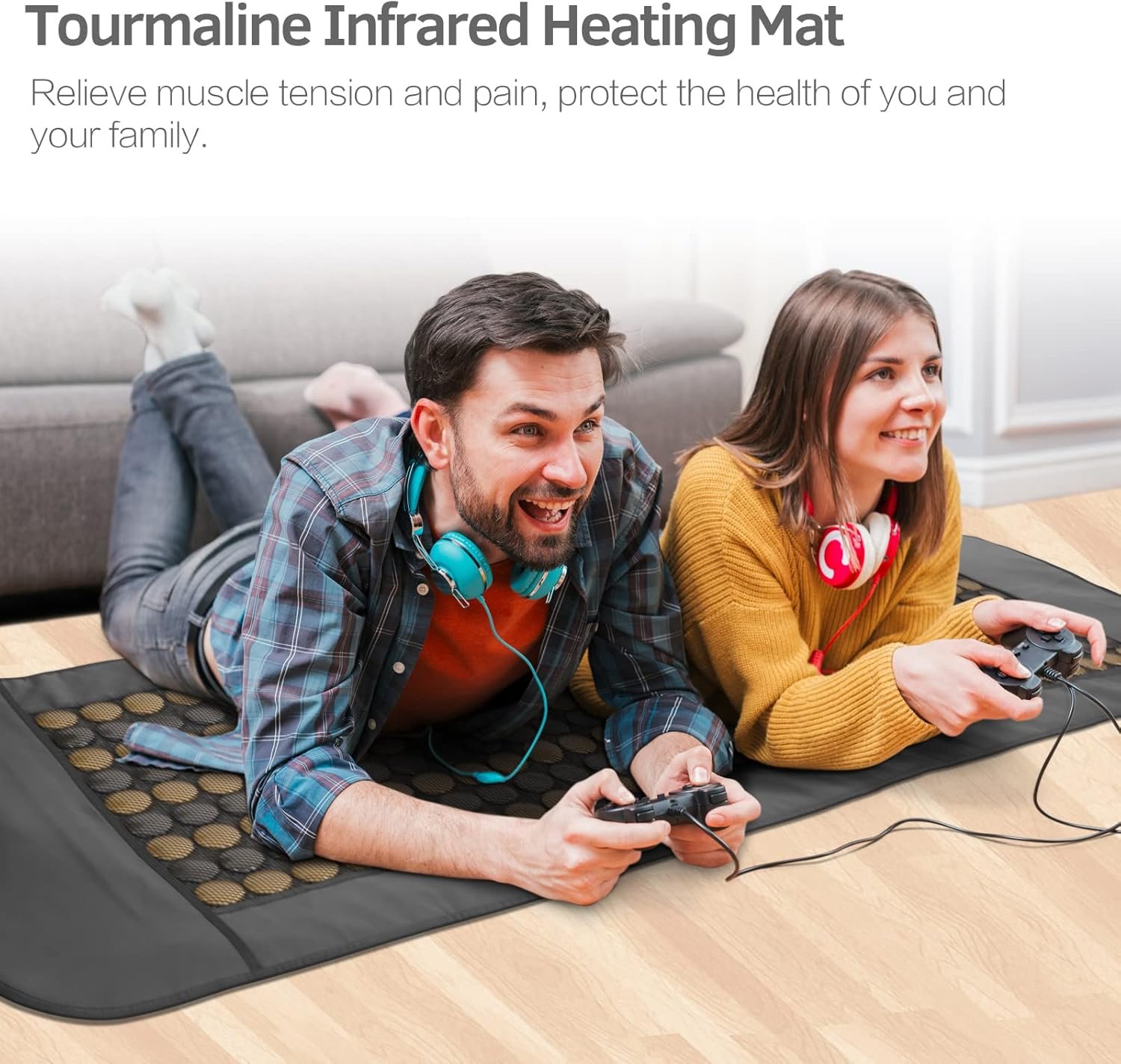 【LARGE SIZE FOR FULL BODY THERAPY】— 70 inches in length, and 24 inches in width, fixed with 230 Tourmaline and 32 Natural Jade stones, cover from occiput to heel. This heating mat can be used for the whole body, providing a steady flow of heat