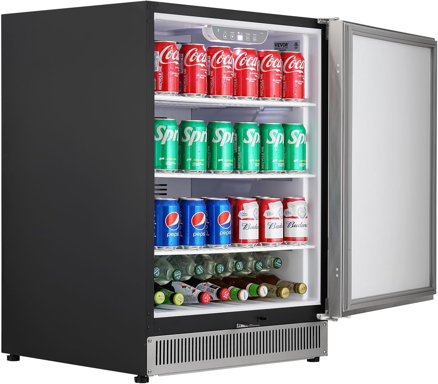 Rapid Cooling Performance: Our 24″ outdoor beverage refrigerator adopts an upgraded compressor, experiencing swift refrigeration. At an ambient temperature of 87℉, it reaches 34℉ in approximately 60 minutes. With a spacious 185QT capacity, the beverage refrigerator is perfect for storing beer, drinks, fruits, seafood, meats, and more, catering to all your daily needs.