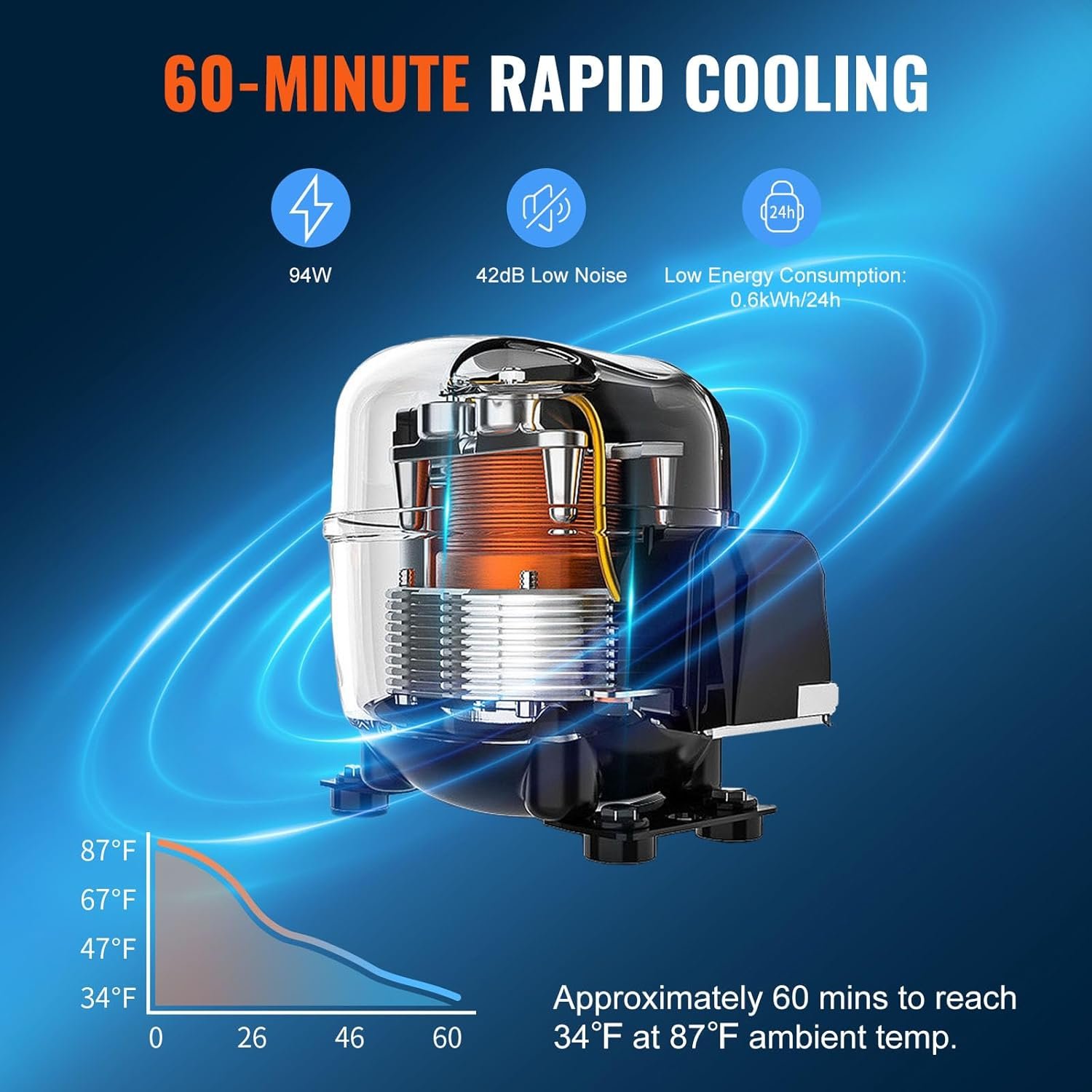 Quiet & Energy Efficient: Our beverage cooler runs efficiently and quietly, with a power consumption of only 0.6kw.h in 24 hours. At under 42db, the beer fridge ensures your peace, whether working, relaxing, or sleeping. This beer fridge is ideal even for bedroom placement.