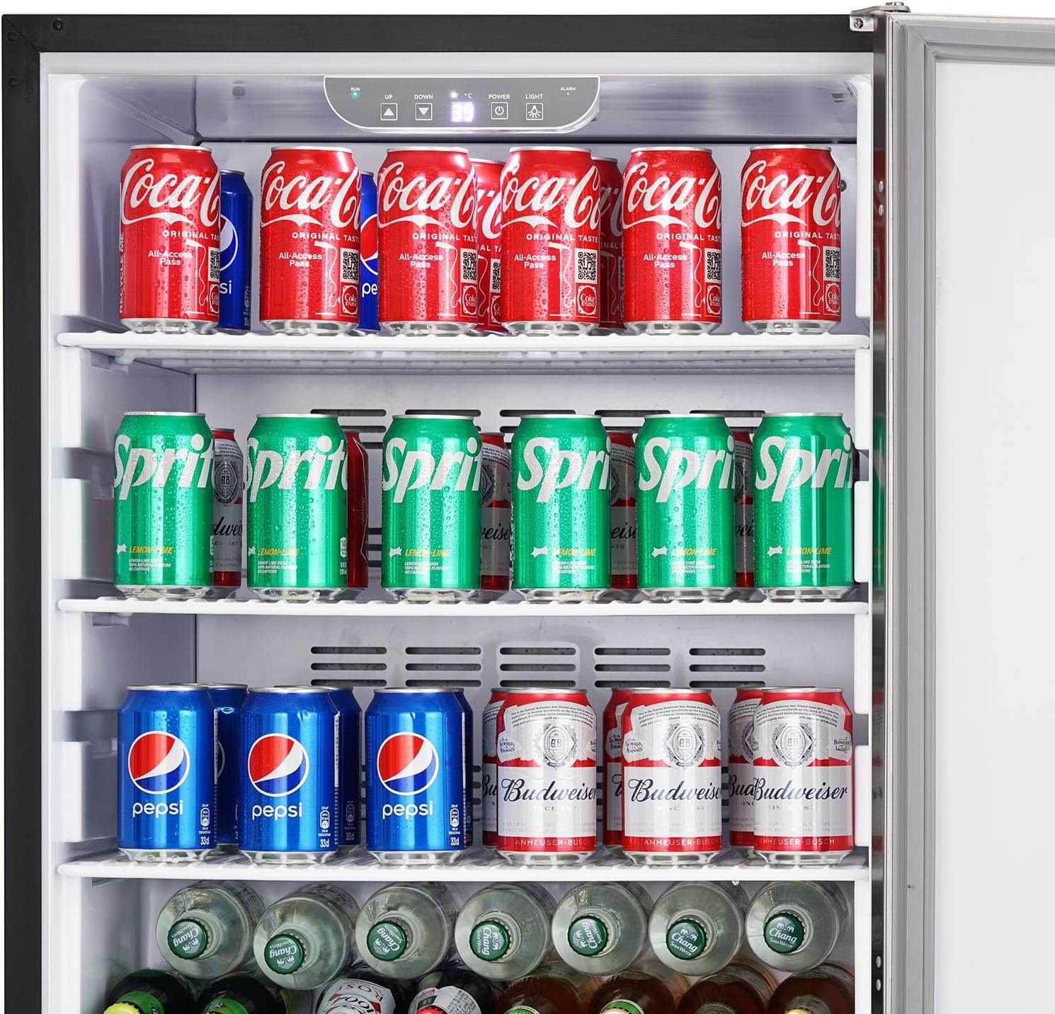 Precision Temperature Control: Choose your desired temperature between 34º F-65 ºF with our state-of-the-art electronic console. The indicator light, continuous door open alerts, high/low-temperature alerts, and more improve your sense of use experience. Plus, enjoy features like temperature memory and automatic defrosting.