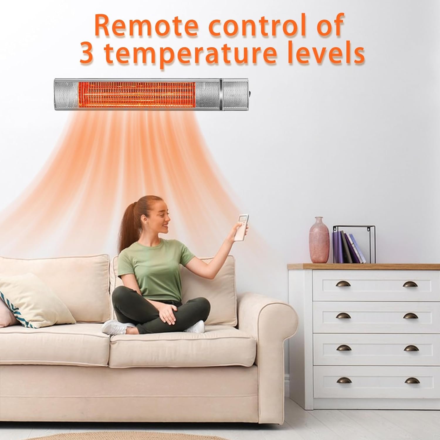 3 HEATING MODES: wall-mounted heater package includes mounting hardware which makes it easy to install or relocate, especially with installation video. And patio heaters can adjust the mounting angle from 0℃-90℃.