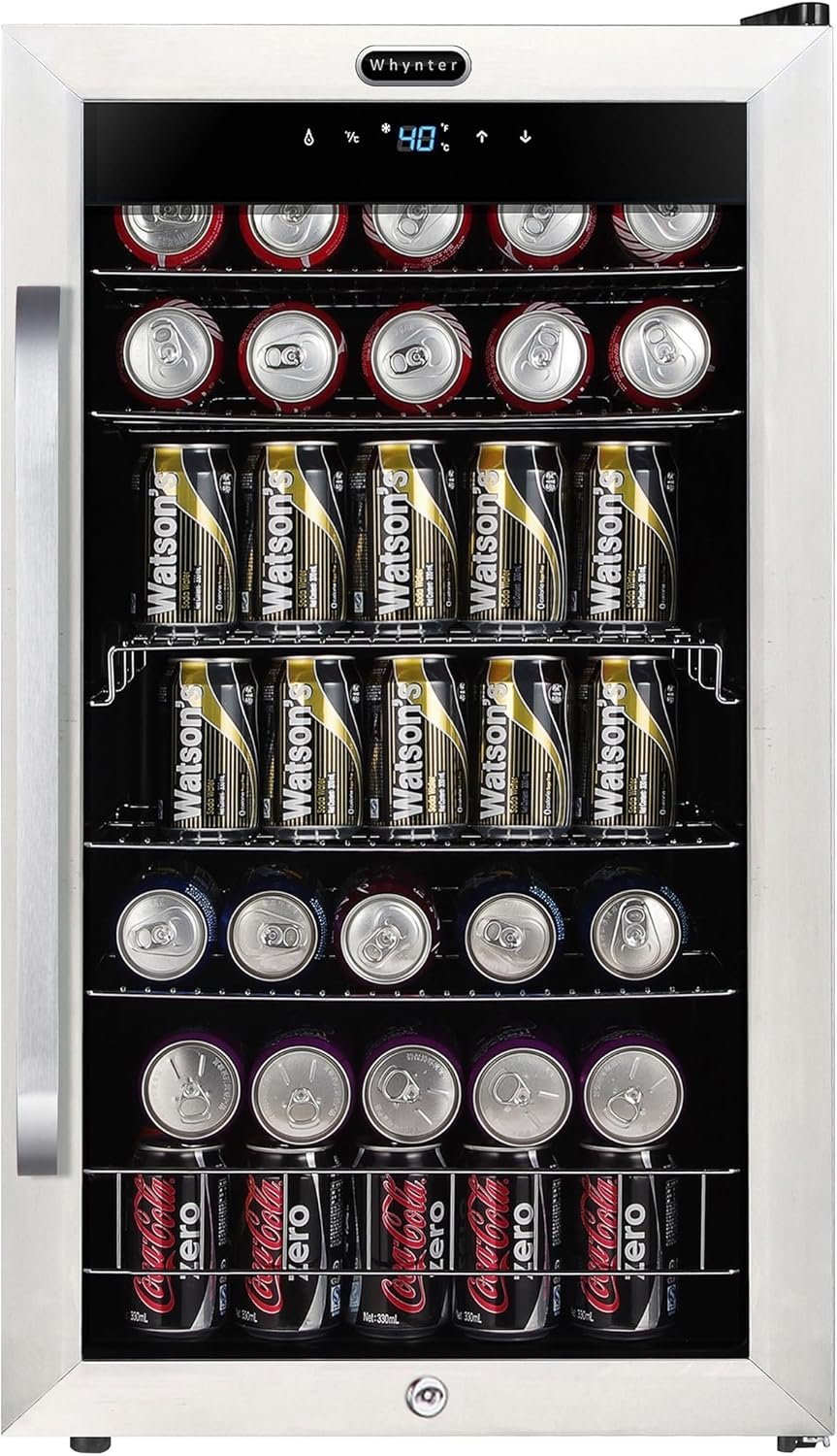 8 reviews for Whynter Beverage Refrigerator with Double-Layer Glass Door, 136-Can Drink Mini Fridge with Lock & Digital Control, BR-1211DS, 3.4 Cubic Feet, Stainless Steel